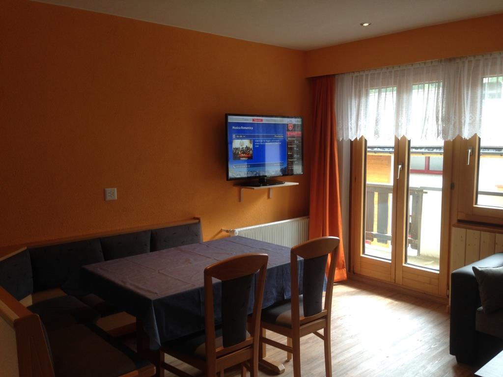3-Zimmerwohnung (54 m2), 4. Stock, 1 Doppelzimmer und 2 Betten in separatem Zimmer, offene Küche mit Esstisch im Wohnzimmer, 2 Duschen/WC, Radio, Kabel-TV und Balkon mit Sicht auf die herrliche Bergwelt.
