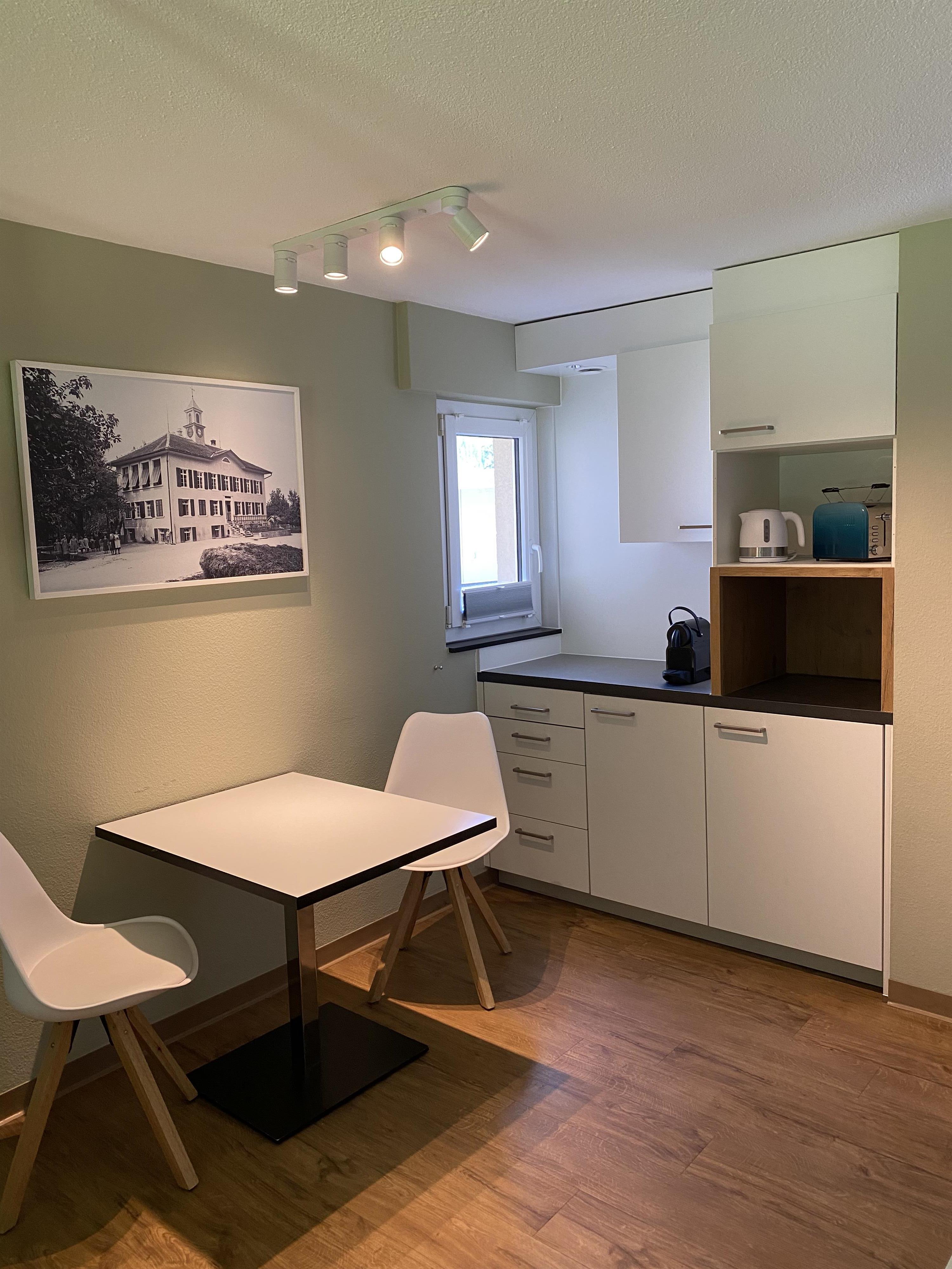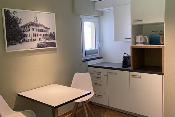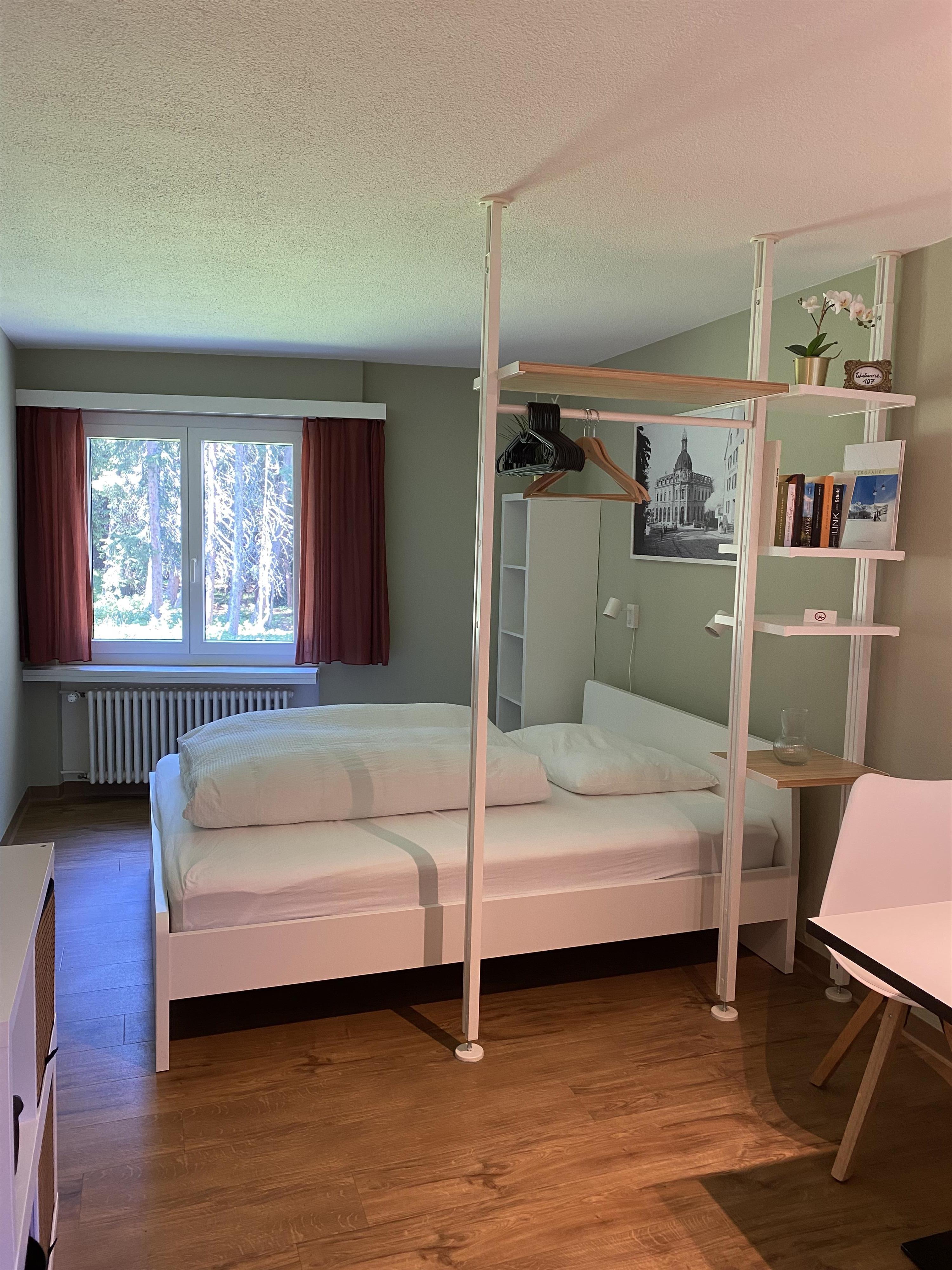 Ruhig gelegene neu renovierte 1-Zimmerwohnung im Hochparterre ohne Balkon, mit Waldblick