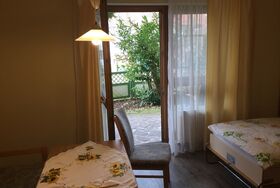 Liebevoll und hell eingerichtetes Appartement Mit DU/ WC, Telefon, SAT-TV, W-Lan kostenlos abgegrenzte Terrasse mit Zugang zu idylischem Garten mit Wasserlauf und Zierteich, Liegewiese mit Gartenmöbel, sehr ruhig gelegen.
