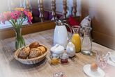 Gepflegte Doppel- und Einzelzimmer im Landhausstil, zentrale Lage: Bahnhofsnähe, Bushaltestelle am Haus, überdachte Frühstücksterrasse, Gästekühlschrank, Abholung vom Bahnhof. Zentrale Lage neben Apotheke und Ärztehaus mit. Wenige Gehminuten zum Bahnhof und Kurpark.