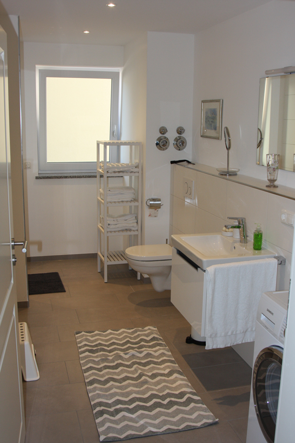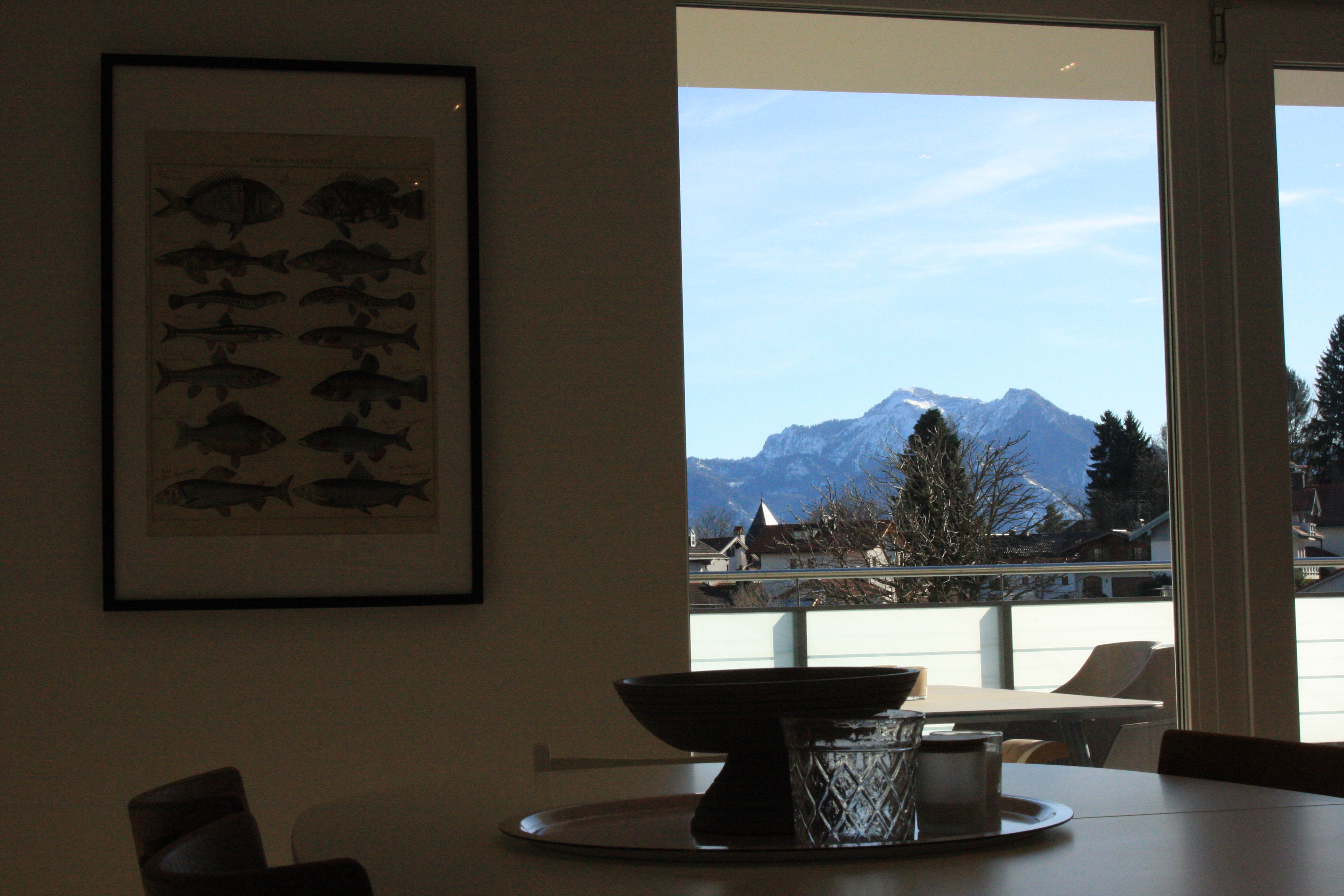 Unsere Ferienwohnung im Herzen Bernaus und unweit des Chiemsees ist ideal für alle, die es zentral und komfortabel lieben.Das Wohnzimmer ist sehr geräumig und verfügt über eine hochwertige, offene Küche sowie eine große Fensterfront (bodentief). Dem Wohnzimmer schließt sich eine großzügige, halb überdachte Terrasse an, von der aus man einen herrlichen Blick auf die umliegende Bergkette hat.42-Zoll-Flat-TV und High-Speed WLAN Anschluss sind obligatorisch. Die Küche ist mit hochwertigen Geräten versehen, es gibt einen Backofen, eine separate Mikrowelle und einen Induktionsherd, eine Spülmaschine und einen großen Kühl- und Gefrierschrank. Sie ist außerdem ausgestattet mit einer Kaffeemaschine, Wasserkocher und Toaster. Der Essbereich lädt zum gemütlichen Beisammensein ein. Eines der beiden Schlafzimmer ist ausgestattet mit einem 1,80 m breiten Doppelbett, das zweite Schlafzimmer mit zwei Einzelbetten, die bei Bedarf zusammengeschoben werden können. Darüber hinaus befindet sich in den Schlafzimmern jeweils ein großer Kleiderschrank. Das geräumige Bad mit Dusche enthält außerdem einen Wasch-Trockner.