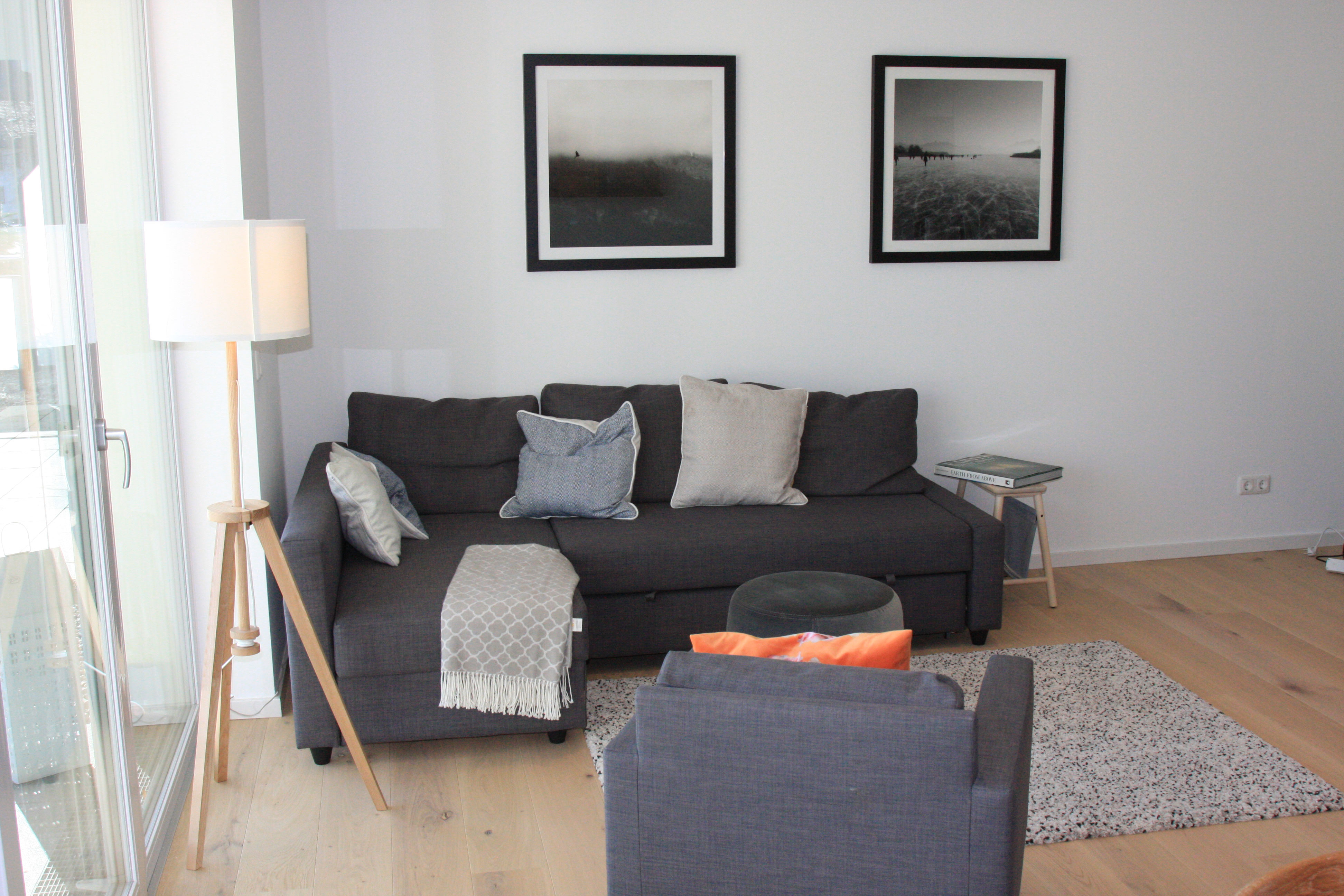 Das Wohnzimmer ist sehr geräumig und verfügt über eine hochwertige, offene Küche sowie eine große Fensterfront (bodentief). Dem Wohnzimmer schließt sich eine großzügige, halb überdachte Terrasse an, von der aus man einen herrlichen Blick auf die umliegende Bergkette hat.42-Zoll-Flat-TV und High-Speed WLAN Anschluss sind obligatorisch. Die Küche ist mit hochwertigen Geräten versehen, es gibt einen Backofen, eine separate Miktrowelle und einen Induktionsherd, eine Spülmaschine und einen großen Kühl- und Gefrierschrank. Sie ist außerdem ausgestattet mit einer Kaffeemaschine, Wasserkocher und Toaster. Der Essbereich lädt zum gemütlichen Beisammensein ein. Eines der beiden Schlafzimmer ist ausgestattet mit einem 1,80 m breiten Doppelbett, das zweite Schlafzimmer mit zwei Einzelbetten, die bei Bedarf zusammengeschoben werden können. Darüber hinaus befindet sich in den Schlafzimmern jeweils ein großer Kleiderschrank. Das geräumige Bad mit Dusche enthält außerdem einen Wasch-Trockner.