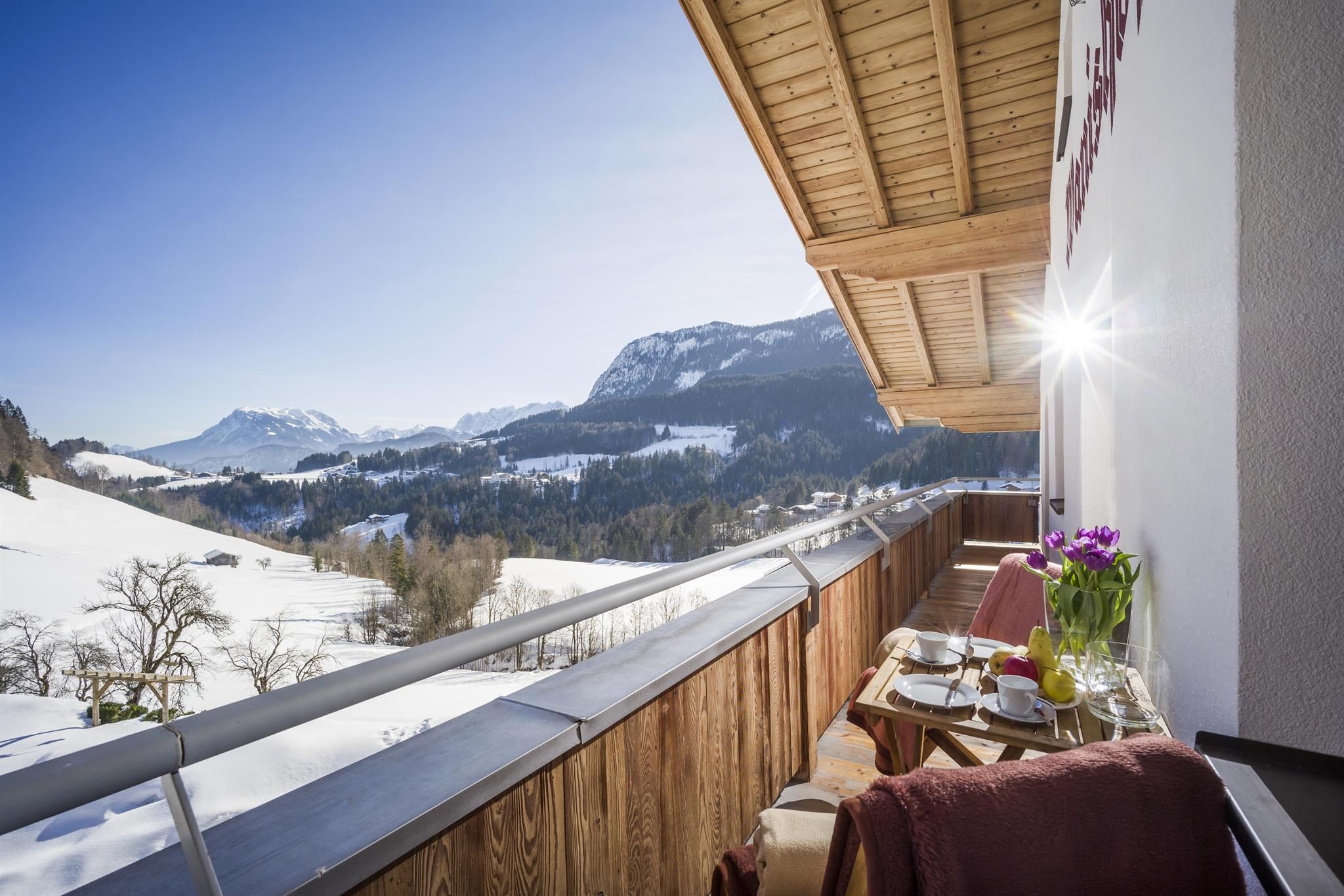 Herzlich - Gemütlich - Natürlich - Traditionsbewusst und Komfortabel. Alle Gästezimmer sind in hellem Fichtenholz, großzügig, gemütlich und sehr liebevoll eingerichtet. Mit Dusche/WC und Balkon, herrlicher Panoramablick zum Kaisergebirge.