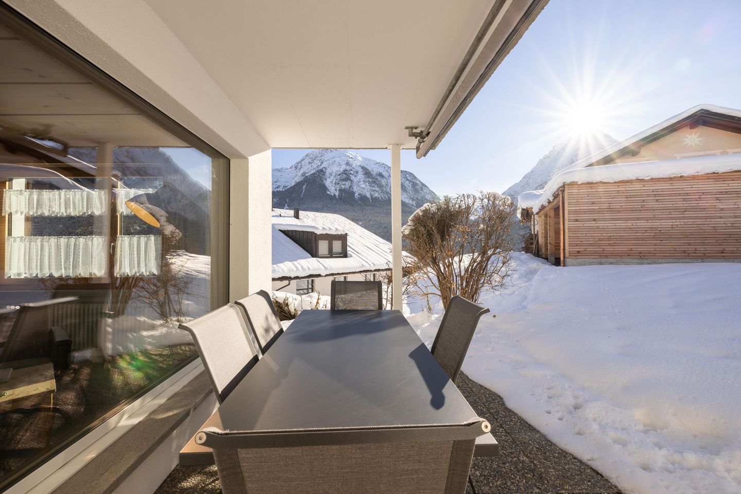 Der grosszügige Sitzplatz lädt im Sommer sowie im Winter zum Verweilen ein.