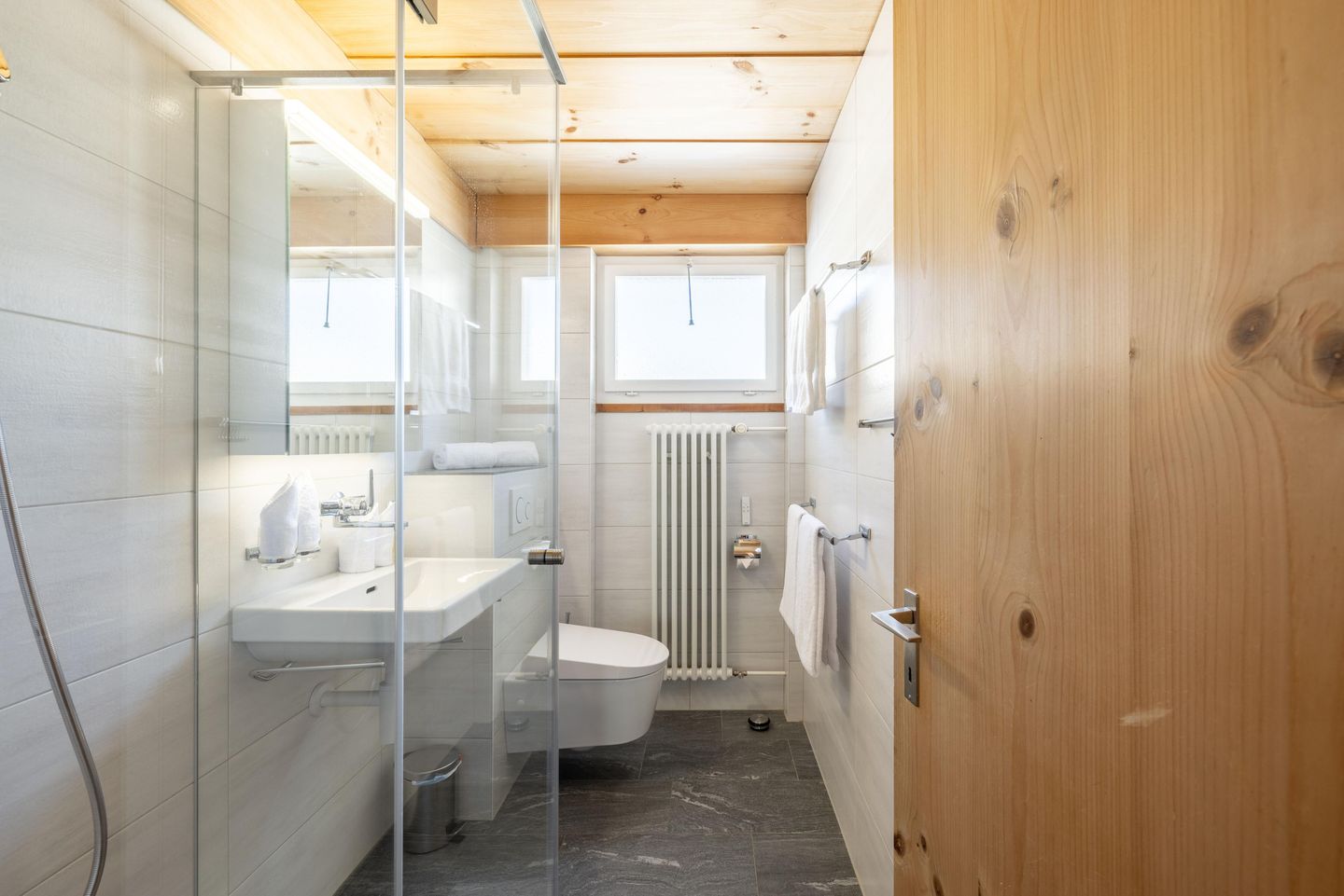 In dieser Ferienwohnung soll man ganz abschalten und den Alltag hinter sich lassen, daher befindet sich hier kein Fernseher. Schaut man aus dem Fenster kann man den ganzen Tag die Unterengadiner Bergwelt bestaunen.