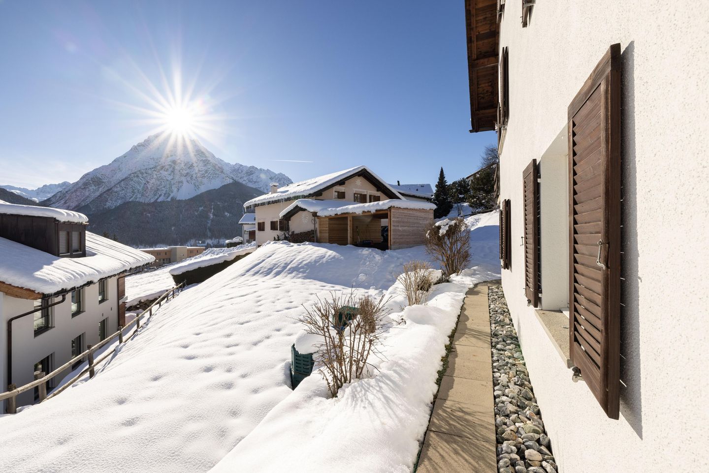 Diese helle und gemütliche Ferienwohnung liegt etwas oberhalb vom Zentrum Scuol. Der Ortsbus und auch die Geschäfte, Restaurants sowie das Mineralbad Bogn Engiadina sind jedoch in wenige Gehminuten erreichbar.