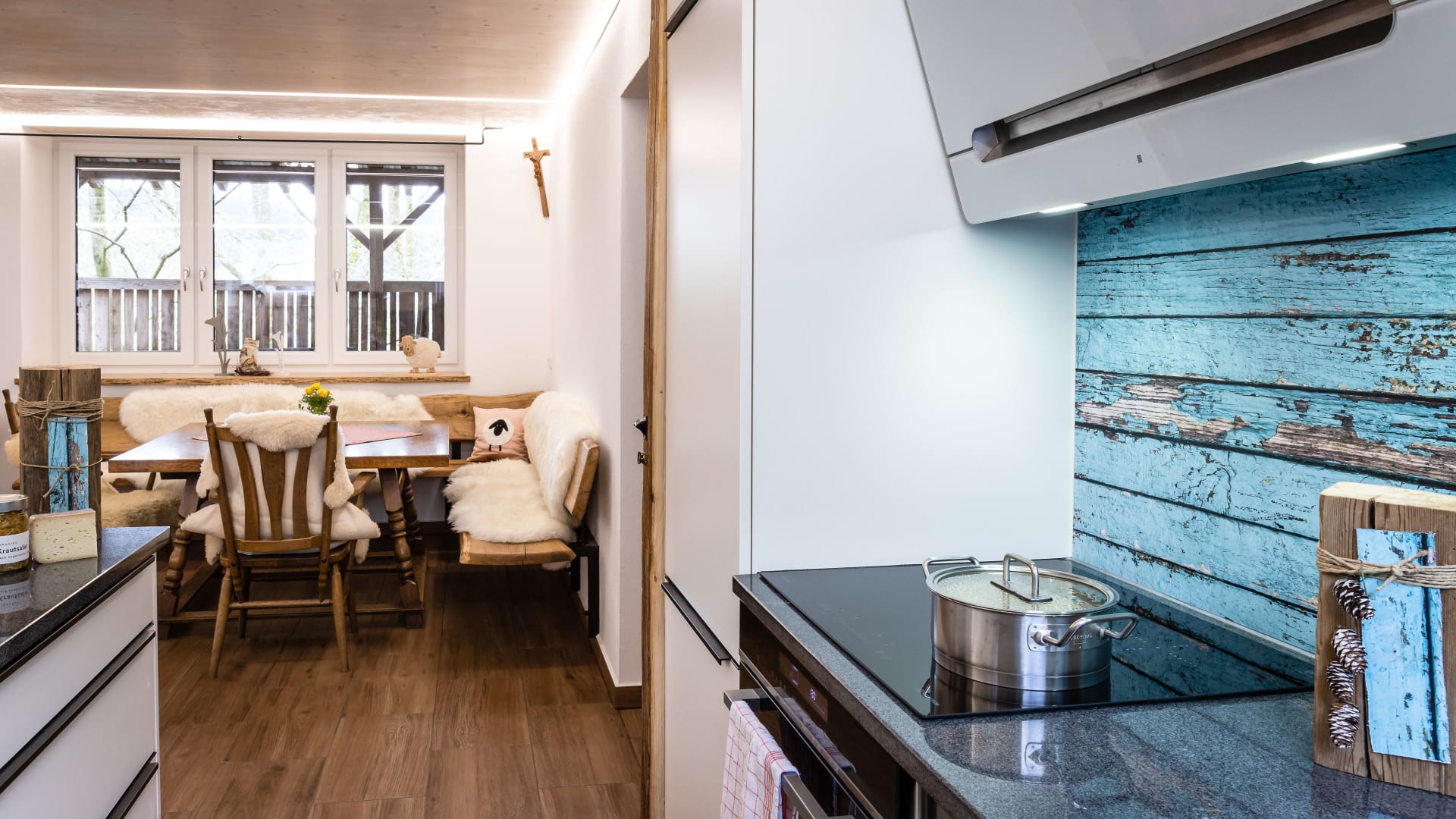Der Küchenbereich des Hofladens steht dir als Gast der Wellness-Suite zur Verfügung - aber halt nicht ganz exklusiv. Denn in unserem Hofladen kann natürlich immer jemand zu Besuch kommen, um sich mit den lokalen Schmankerln zu versorgen. Aber nachdem unsere Kundinnen und Kunden ja lauter super tolle Leut sind, entstehen so immer sehr nette Begegnungen. Und ja - unsere Küche im Hofladen ist super ausgestattet. Sie wird gerne bei Seminaren und Workshops verwendet, aber auch die Gäste unserer Wellness-Suite schwingen hier den Kochlöffel.
