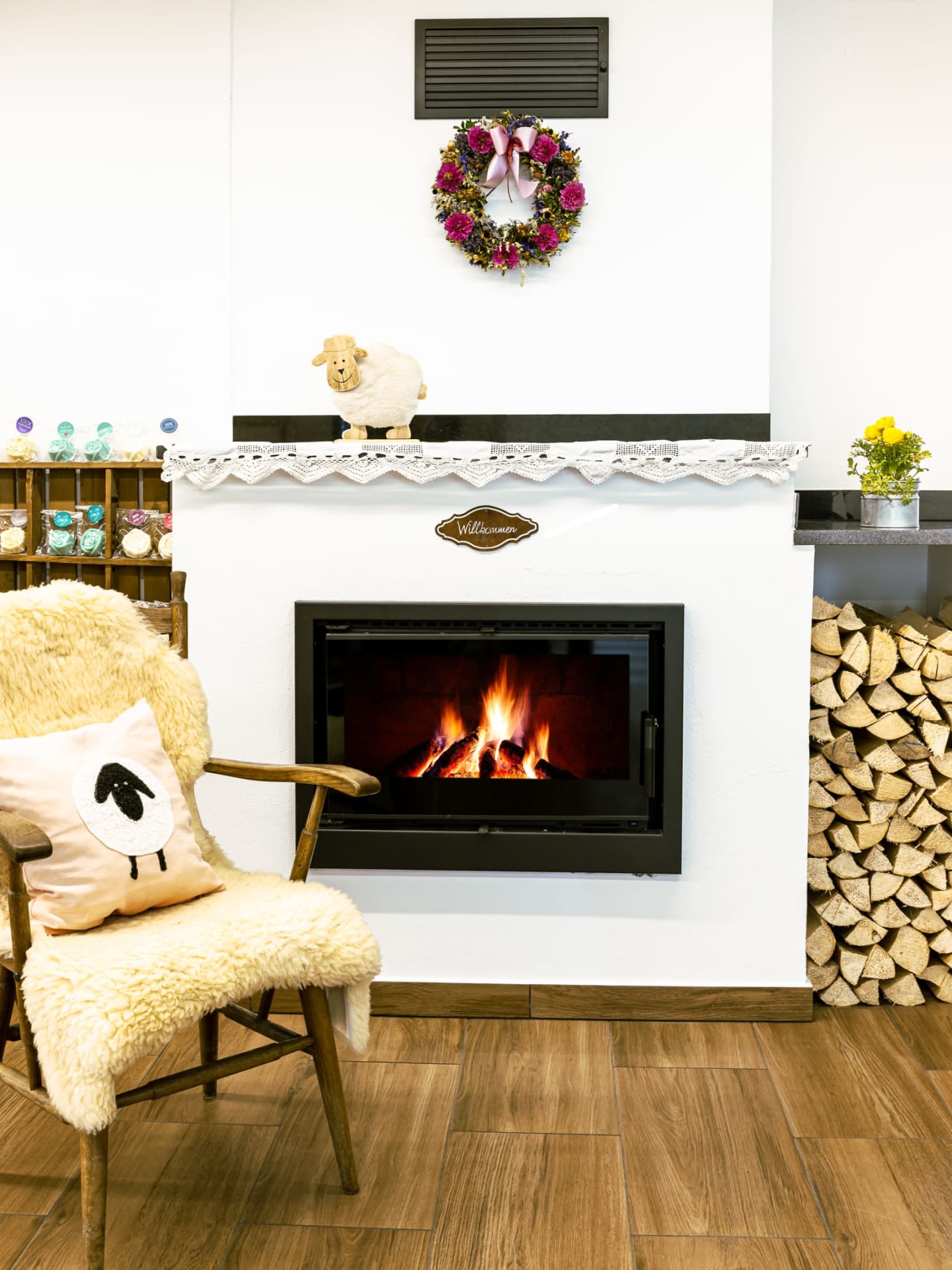 Genuss steht im Hofladen natürlich im Zentrum. Der Kamin dort schafft eine besonders gemütliche Atmosphäre, genauso wie die gemütliche Essecke. Hier wird am Abend gerne geplaudert, gefeiert oder eine Runde Karten gespielt.