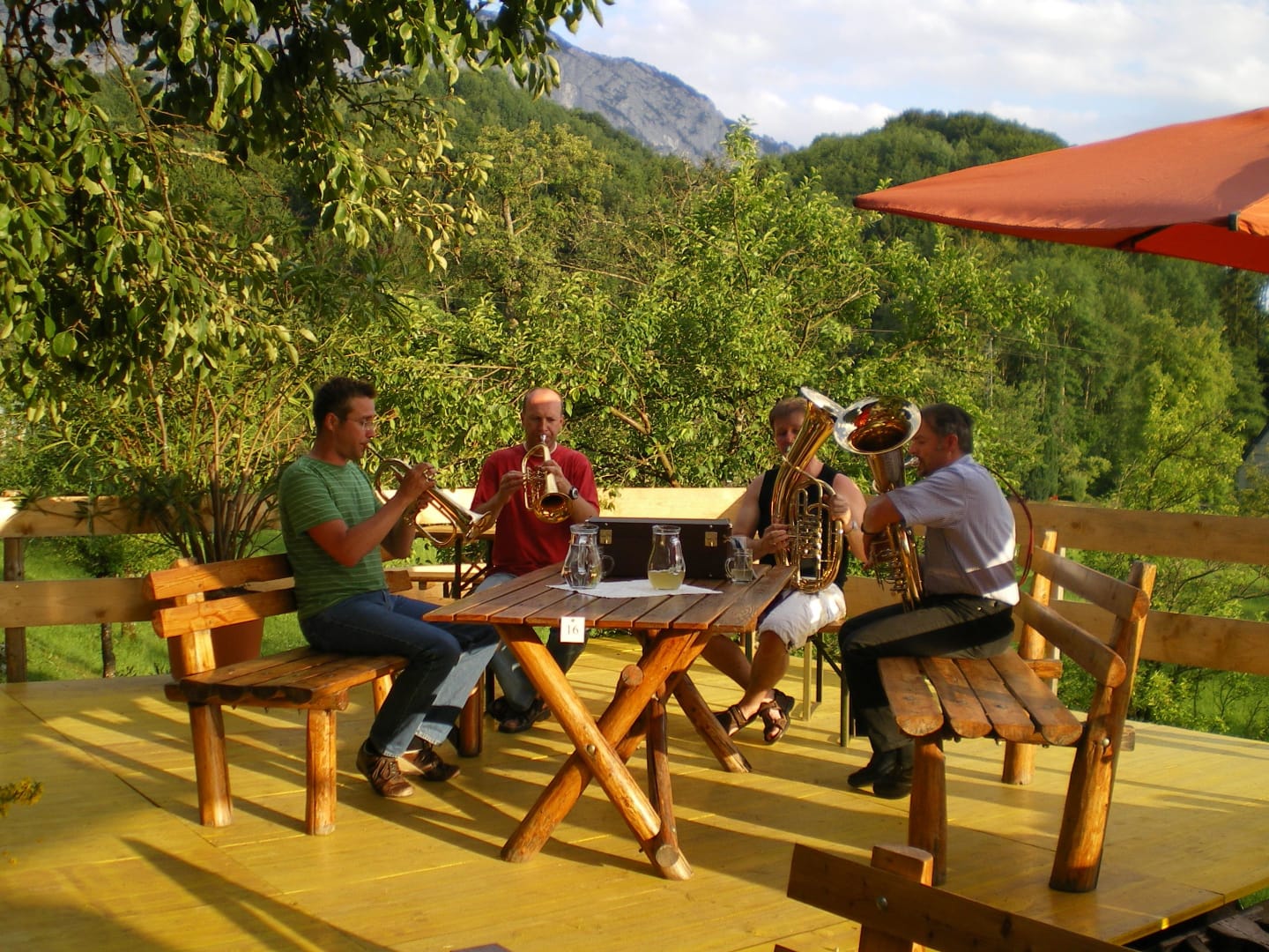 Abends lassen Sie sich bei einer Brettljause mit hausgemachtem Bauernbrot und einem Mosthugo auf unserer Hofterrasse verwöhnen. Oder Sie braten sich Ihren selbstgefangenen Fisch. Wandern Sie mit uns zur nahen Halt, wo wir am Lagerfeuer den romantischem Sonnenuntergang bewundern.