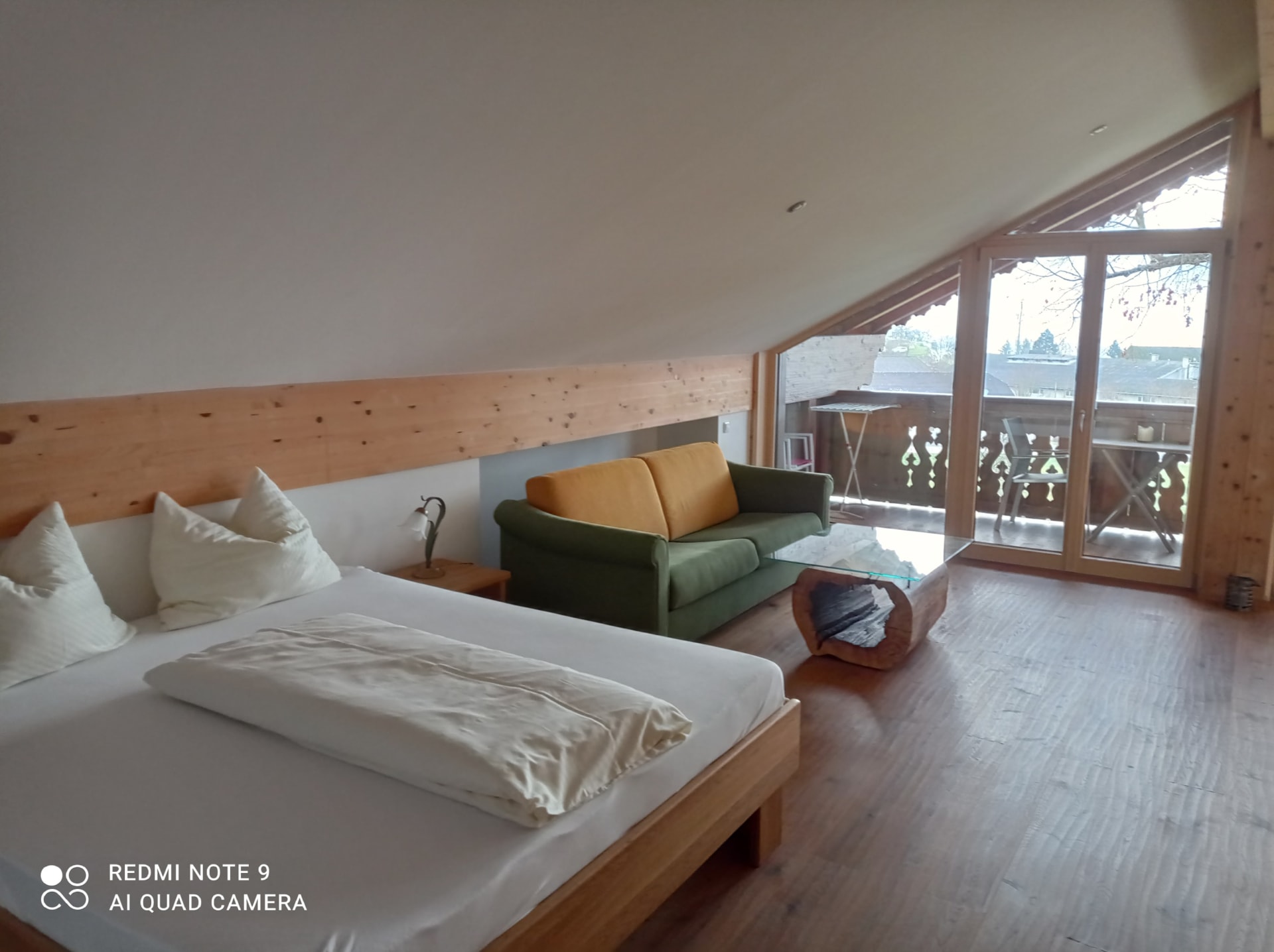 Familien-Suite mit Schlafzimmer und Wohn-Schlafzimmer, Vorraum und Dusche/WC. Neu renoviert, heimelige Altsubstanz.
