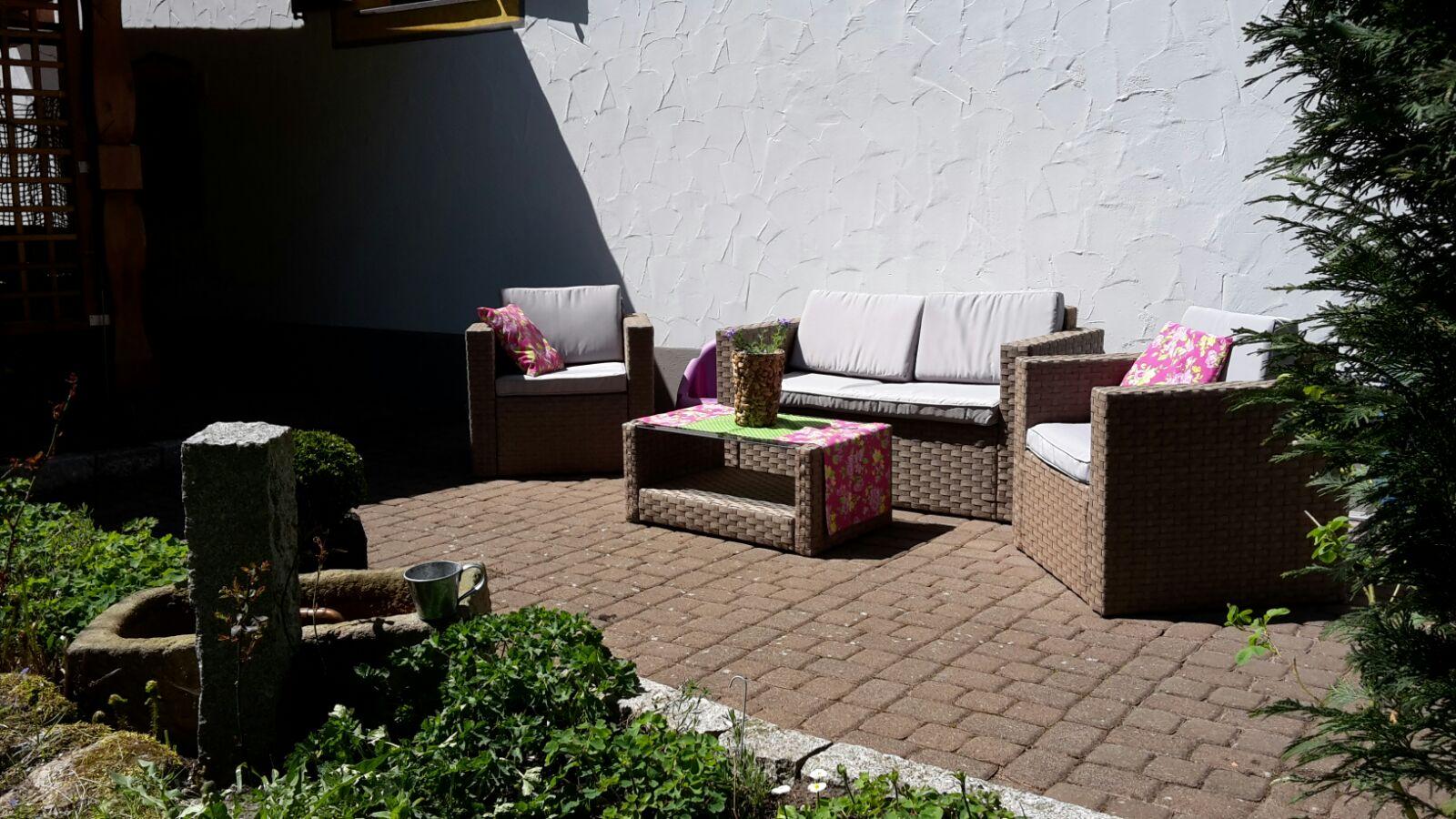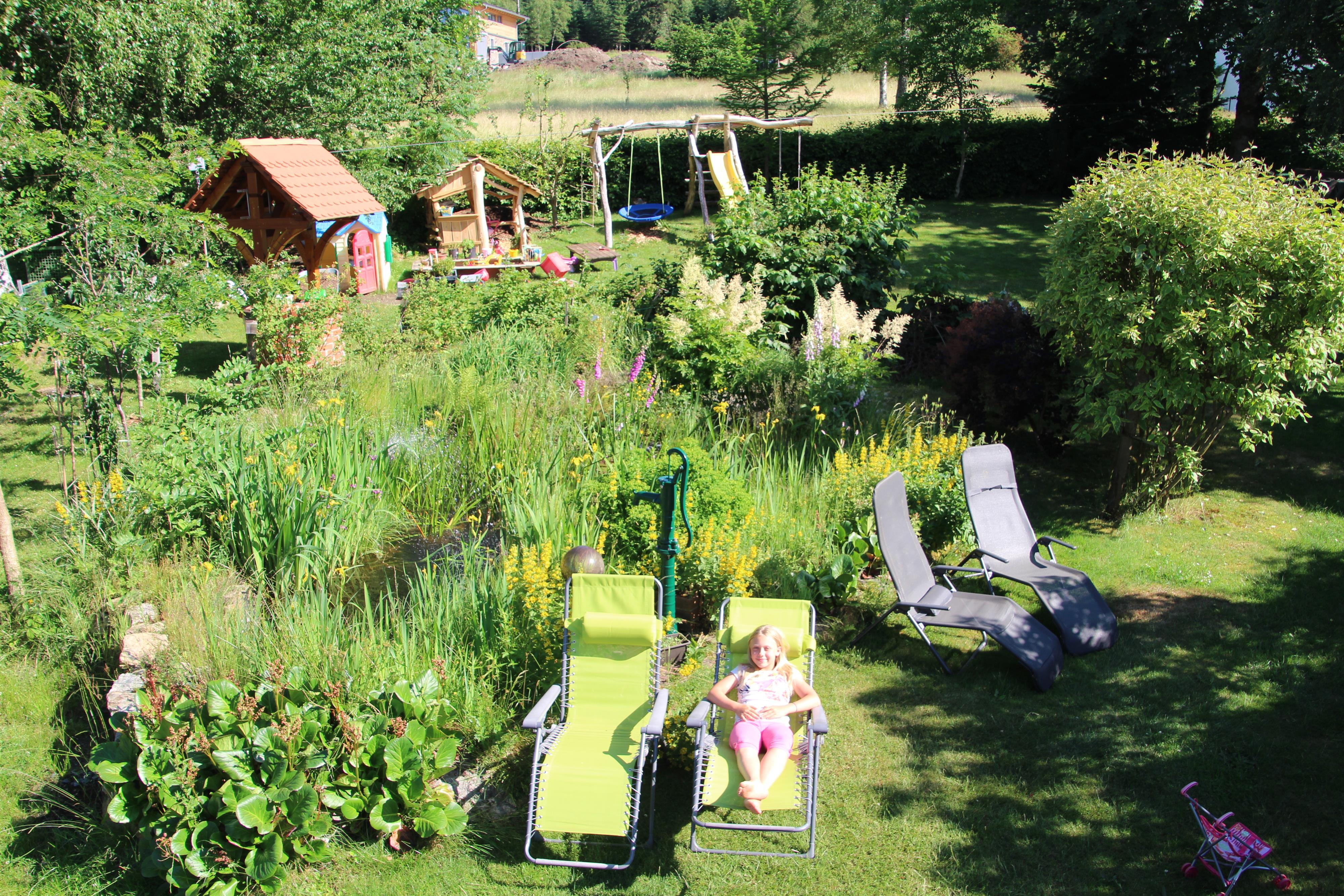 Entspannen sie in unserem gepflegten Garten mit Liegewiese und Teich, der Gartengrillkamin steht Ihnen selbstverständlich zur Verfügung.
