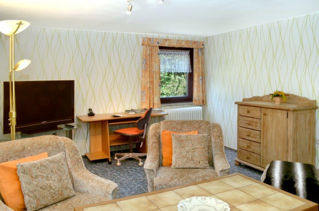 Ferienwohnung A. Schreyer 70 m² Wohnfläche für bis zu 4 Personen *** DTV gute ruhige zentrale Wohnlage nur 5 Geh-Minuten (ca. 300 Meter) zum Ortszentrum von Bischofsgrün nur 10 Geh-Minuten (ca. 600 Meter) zum Einstieg ins Wegenetz des Nordic Park Fichtelgebirge mit vielfältigen Möglichkeiten an Sommer- und Winteraktivitäten hochwertige Küche mit Geschirrspülmaschine, großer Kühlschrank mit Gefrierfach, Mikrowelle usw. TV, DVD Blue Ray, Radio, DSL Internetanschluss, WLAN, Telefon Abstellraum für Wintersportausrüstung oder Fahrräder großer Garten mit kleinem Bach und Gartenteich