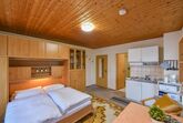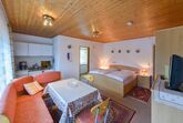 Unsere Ferienwohnungen sind komplett ausgestattet je mit Küchenzeile und Sitzecke, separates Bad mit Dusche/ WC, Balkon mit Sitzmöbel. Küchenzeile mit Herd, Kaffeemaschine, Toaster und Kühlschrank sowie komplettes Koch- und Essgeschirr zur Verfügung.