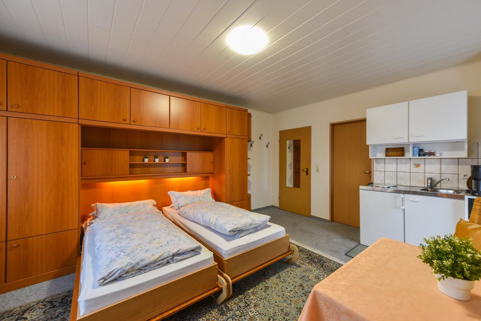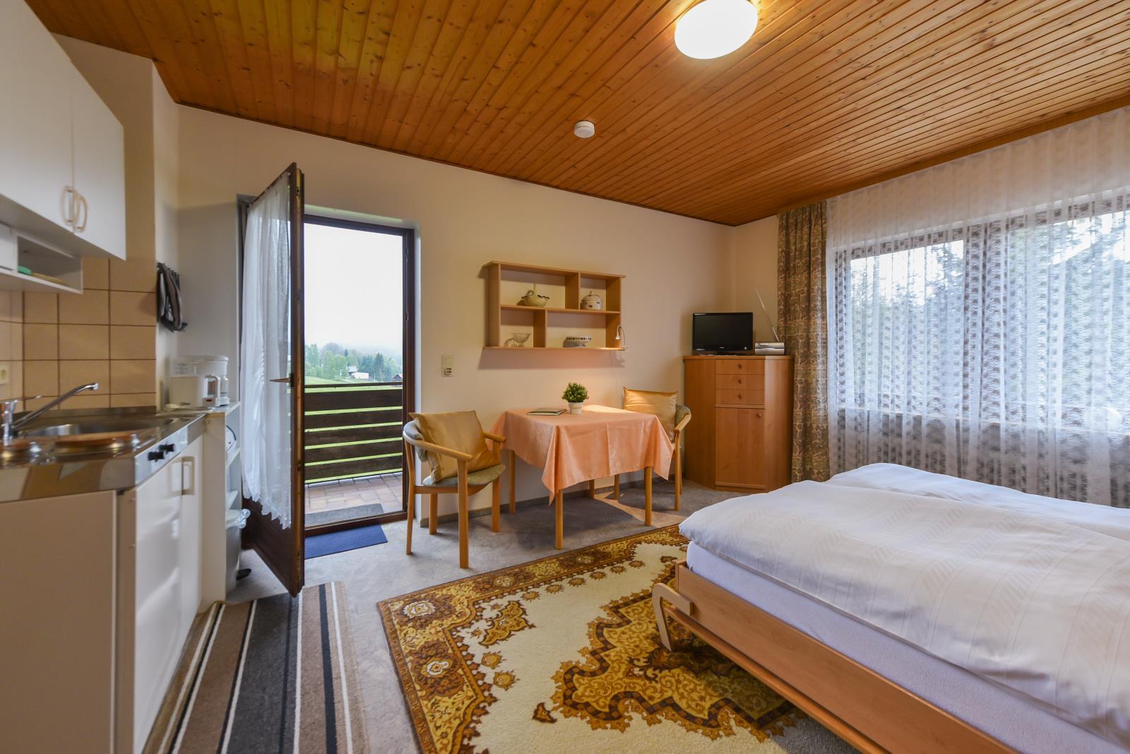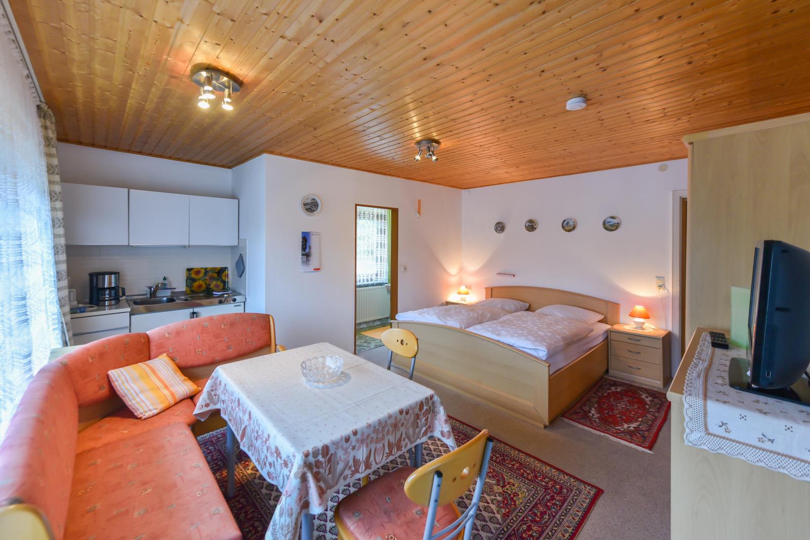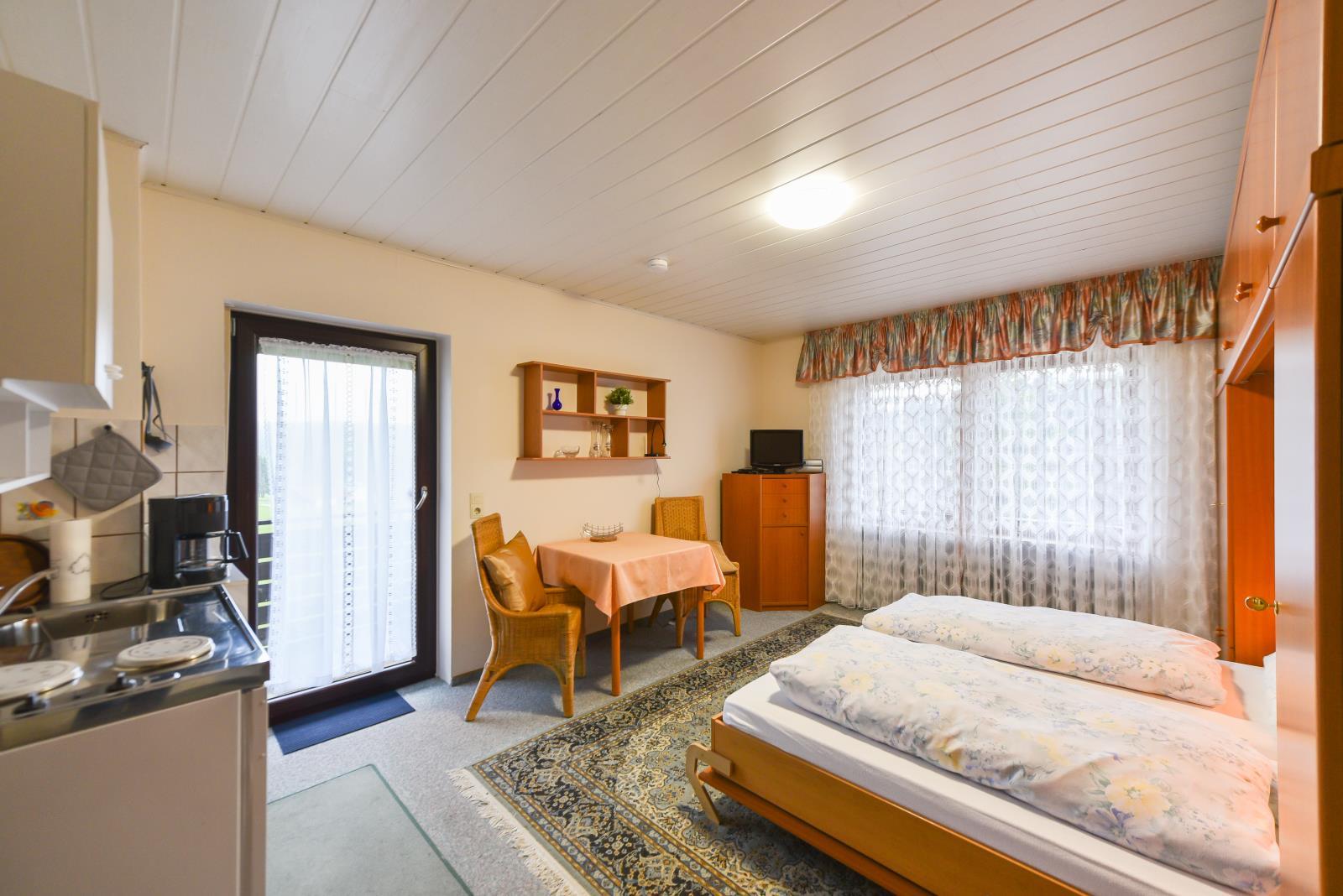 Unser Haus bietet Ihnen: Einraum Ferienwohnungen / Zweiraum Ferienwohnungen je mit Küchenzeile Dusche / WC und gr. Balkon