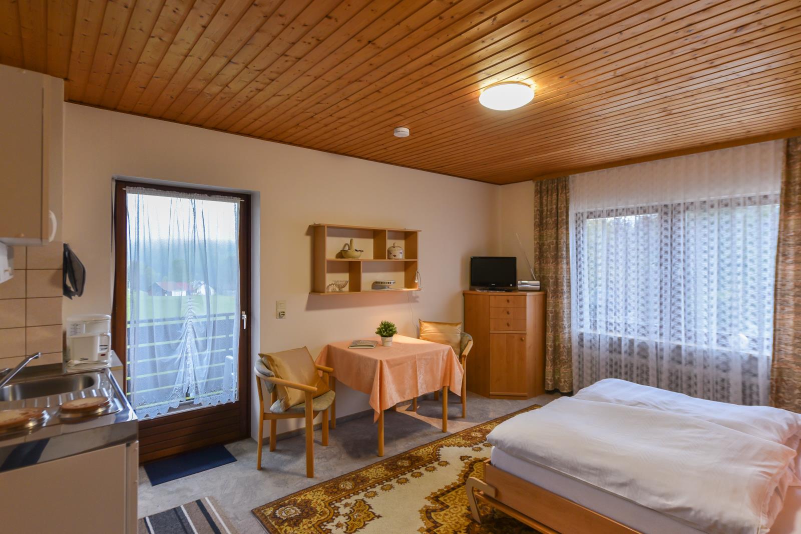 Unser Haus bietet Ihnen: Einraum Ferienwohnungen / Zweiraum Ferienwohnungen je mit Küchenzeile Dusche / WC und gr. Balkon