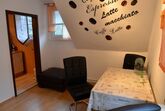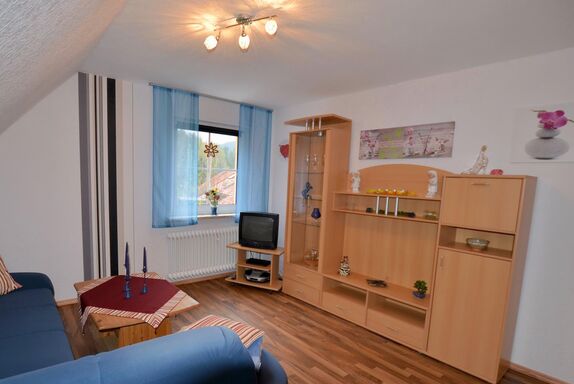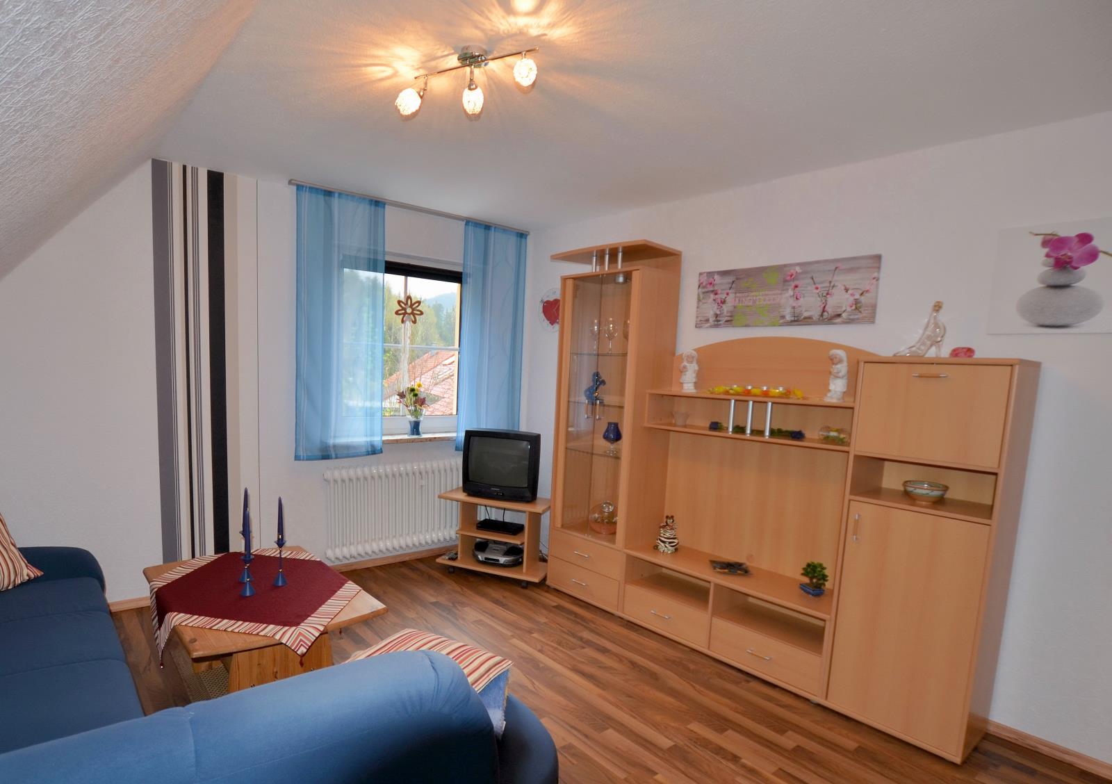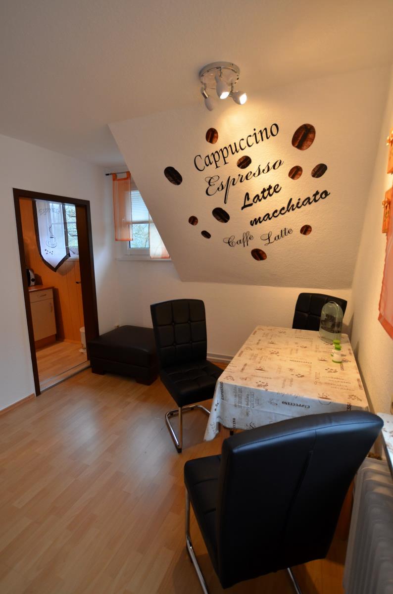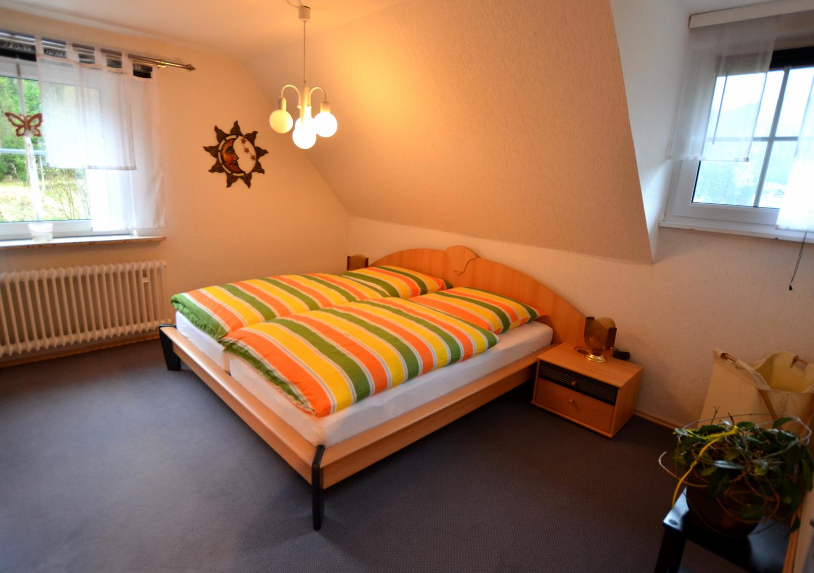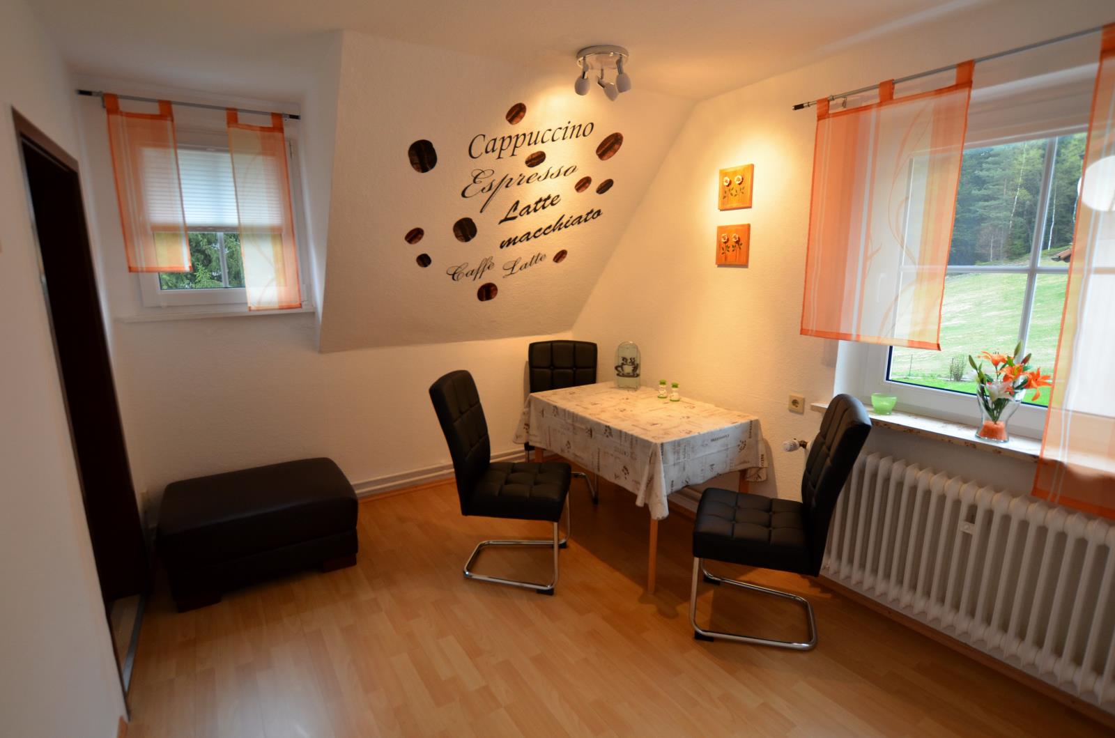 Unser Haus bietet Ihnen eine Ferienwohnung für2 Personen und verfügt über einen separaten Eingang, ein Wohnzimmer, ein Schlafzimmer mit Doppelbett, eine Küche und Essraum, Bad mit Dusche und WC. Auf Wunsch Aufbettung im Wohnzimmer auf dem Sofa möglich. Im Schlafzimmer ist Platz für ein Baby Bett. Das Haus liegt direkt am Waldrand mit Blick ins Tal - Ausgangspunkt für Wanderungen und Mountainbiketouren. Ein großer Garten mit Liegewiese und Kinderspielplatz, separatem Eingang, Unterstellmöglichkeiten für Fahrräder und Parkplatz direkt vor dem Haus garantieren entspannte und ruhige Urlaubsfreuden.