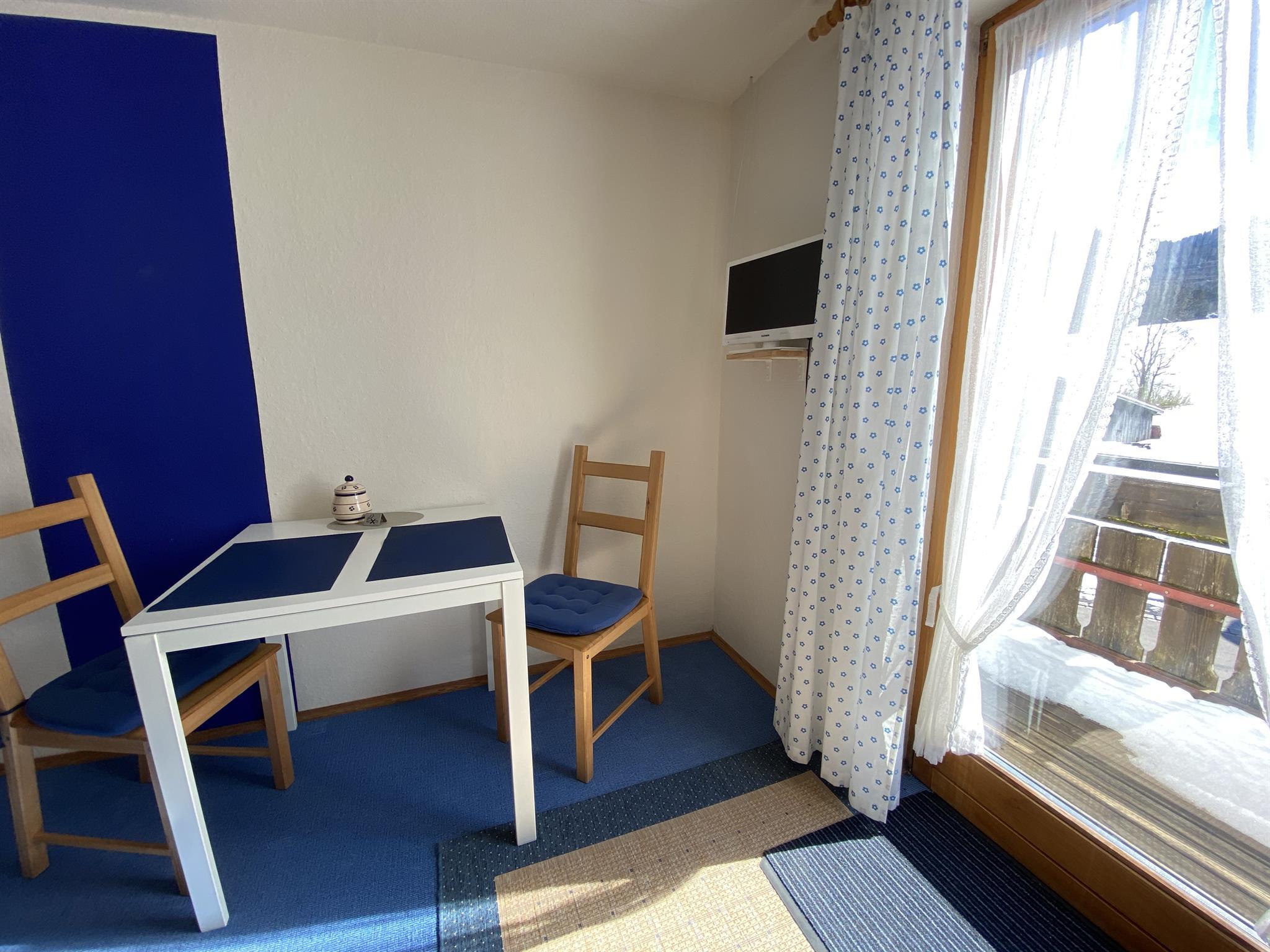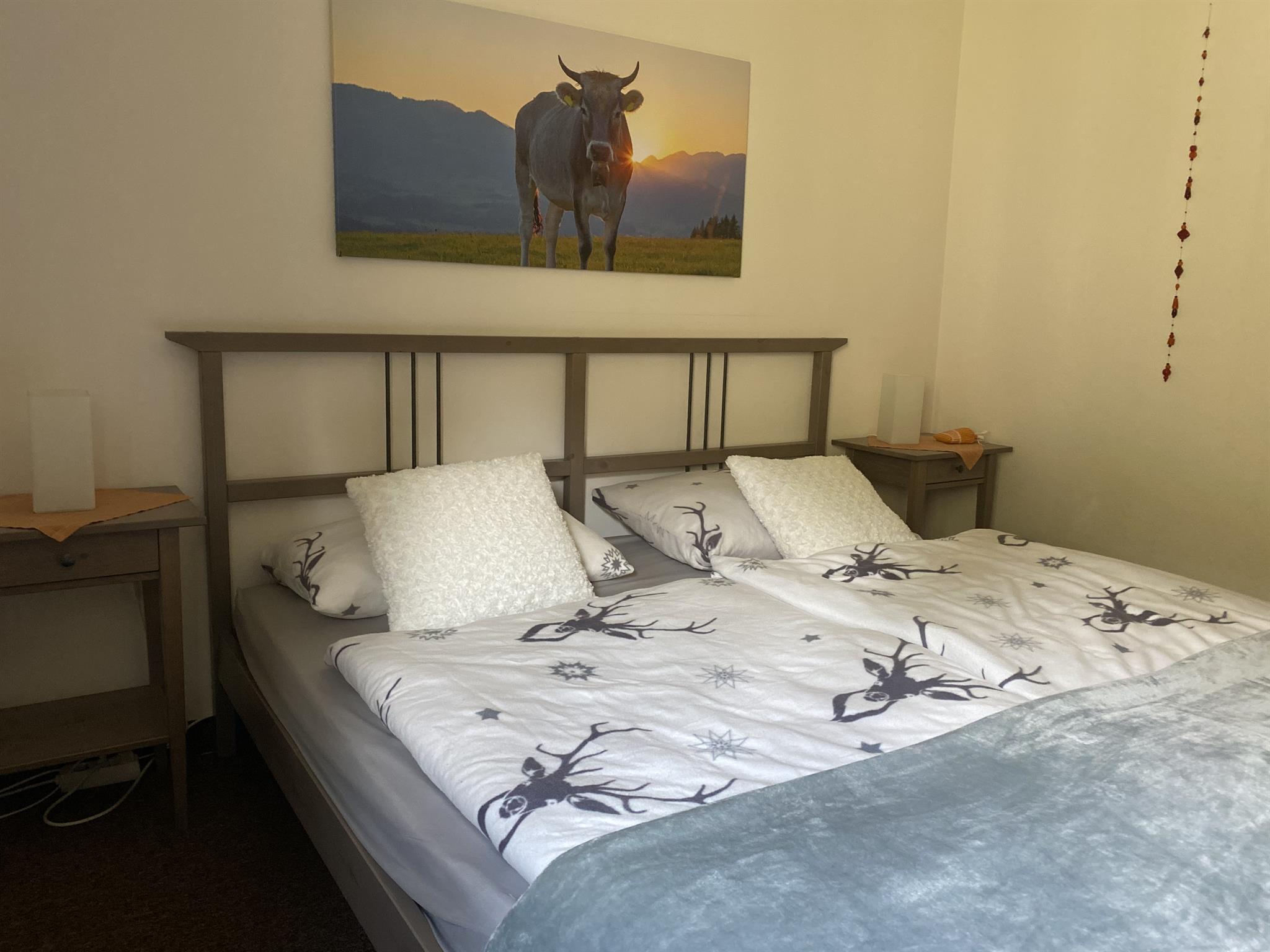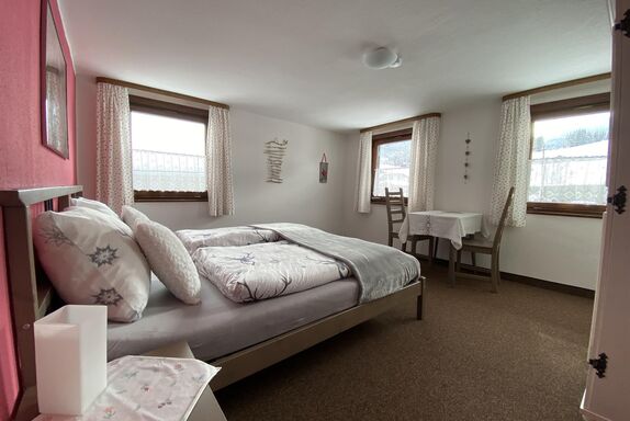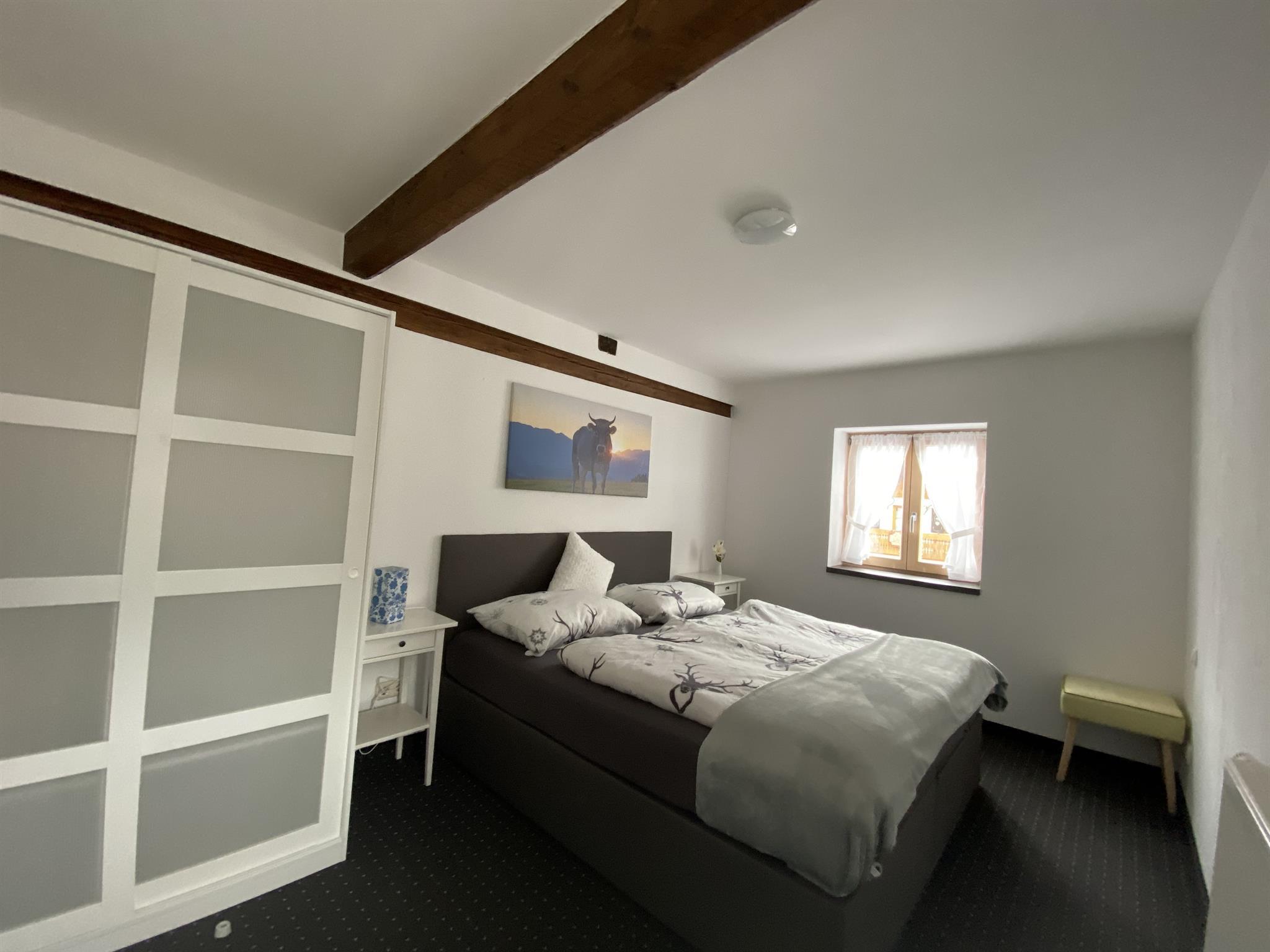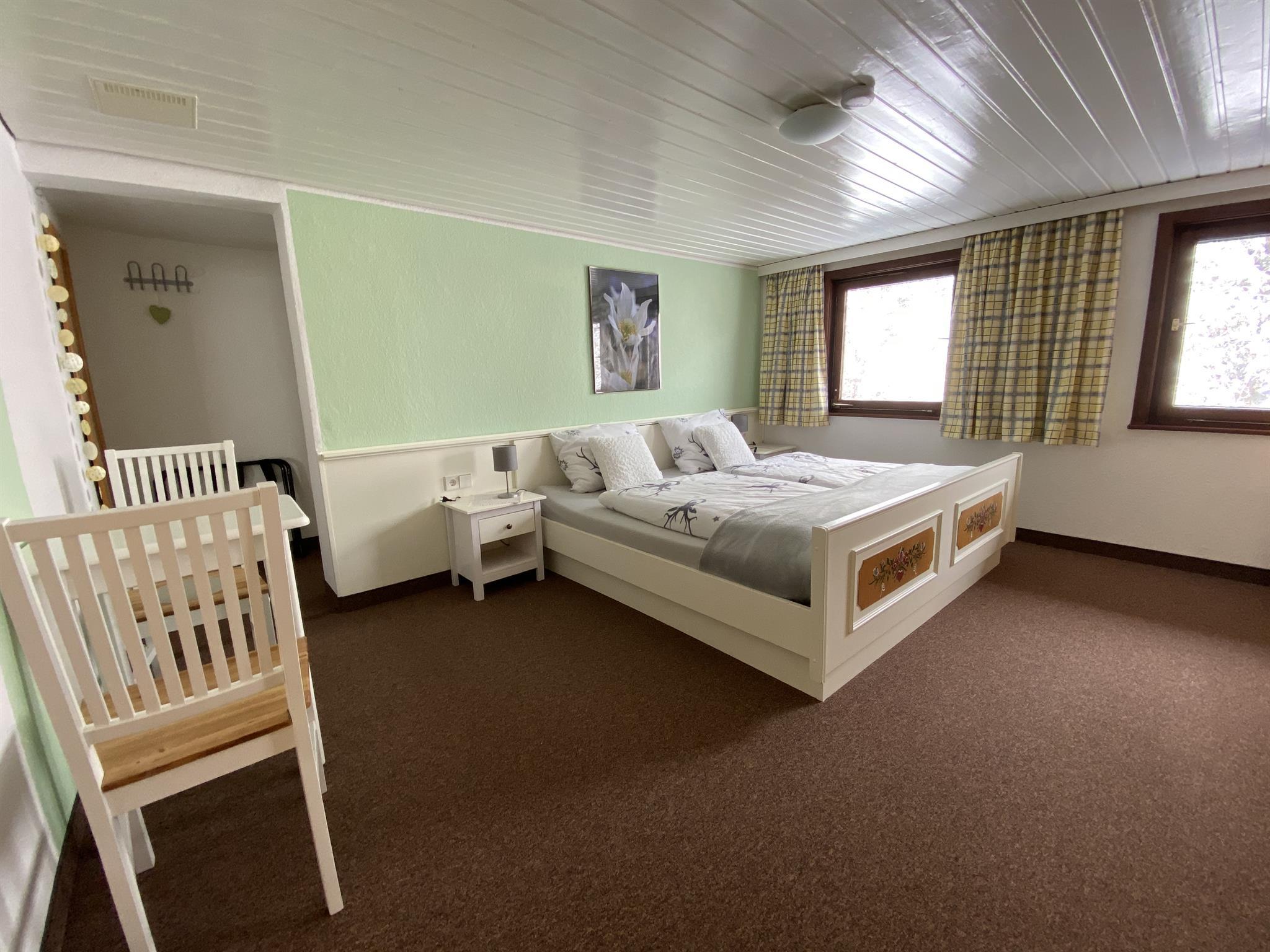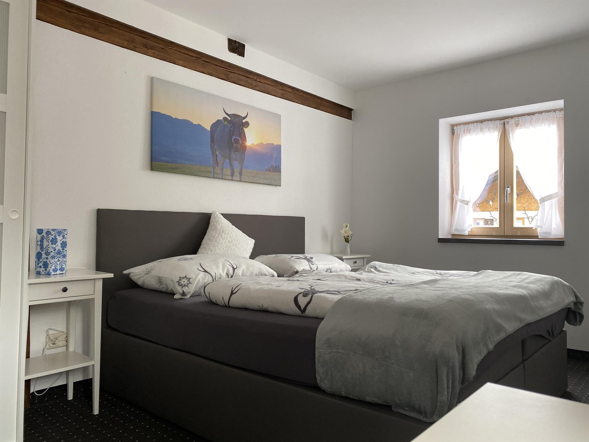 Das Doppelzimmer Gündleskopf besteht aus einem Zimmer mit Doppelbett, SmartTV, einer kleinen Essecke, einem Bad mit Dusche, WC.