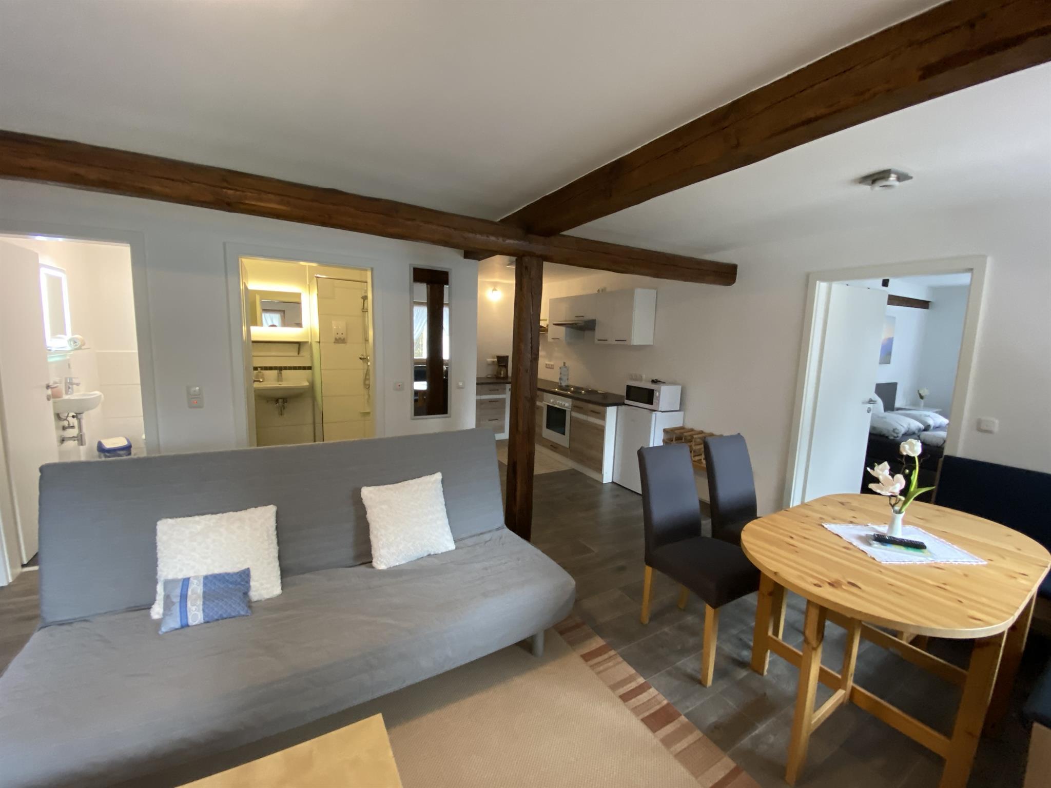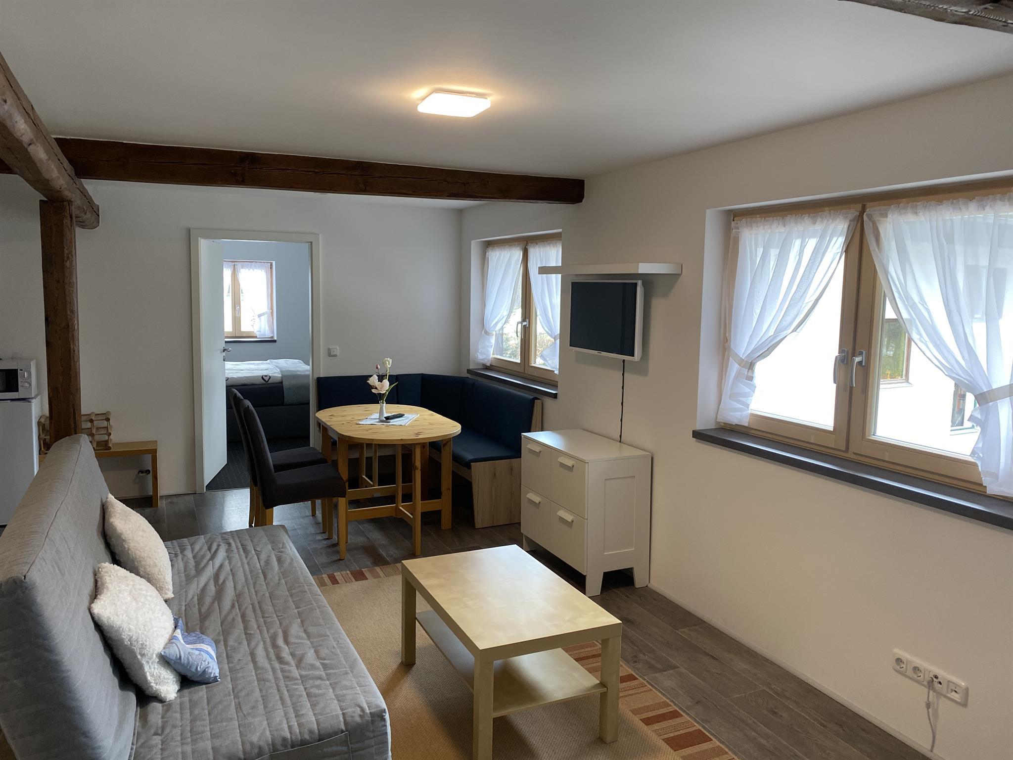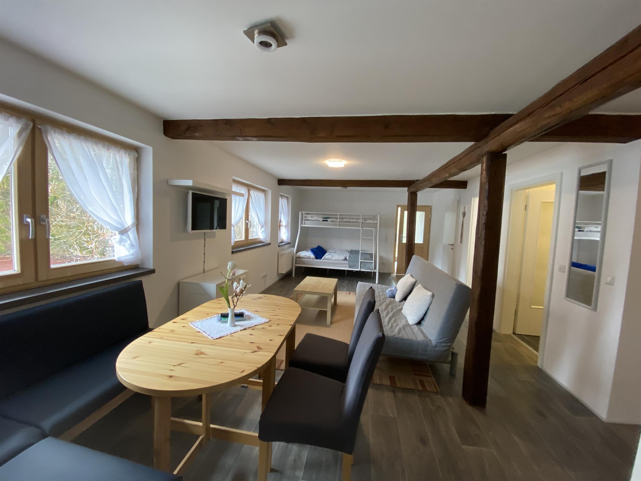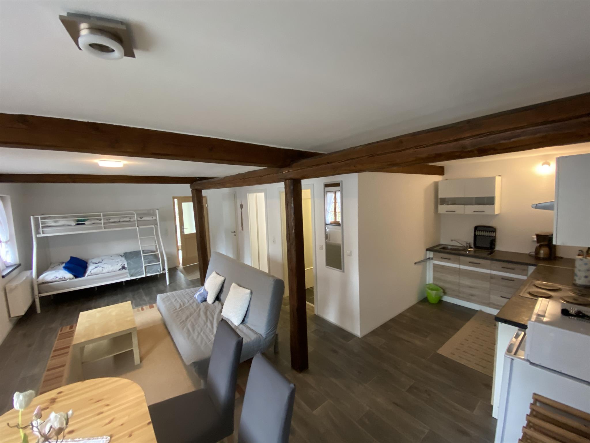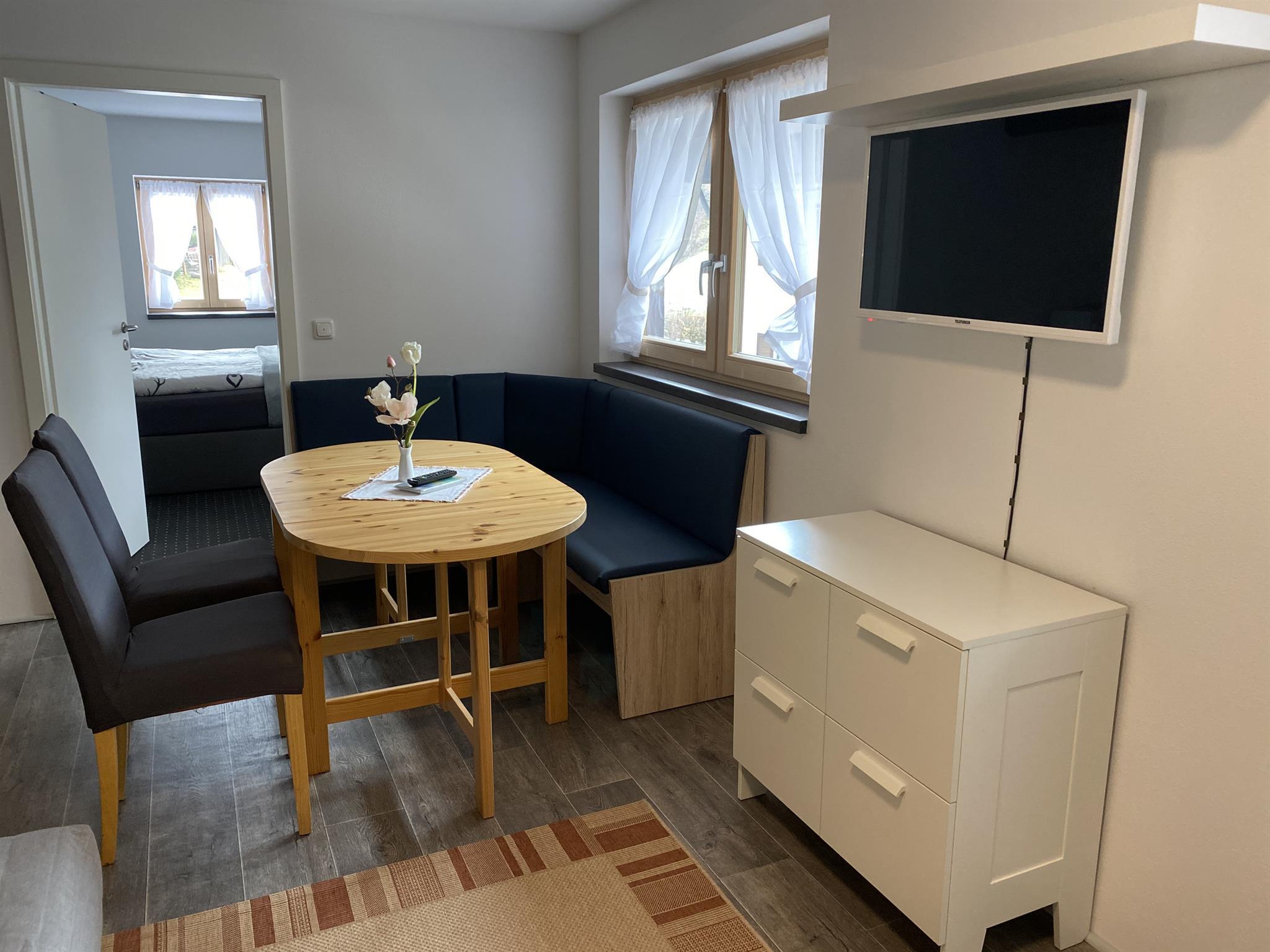 Das Doppelzimmer Gündleskopf besteht aus einem Zimmer mit Doppelbett, SmartTV, einer kleinen Essecke, einem Bad mit Dusche, WC.