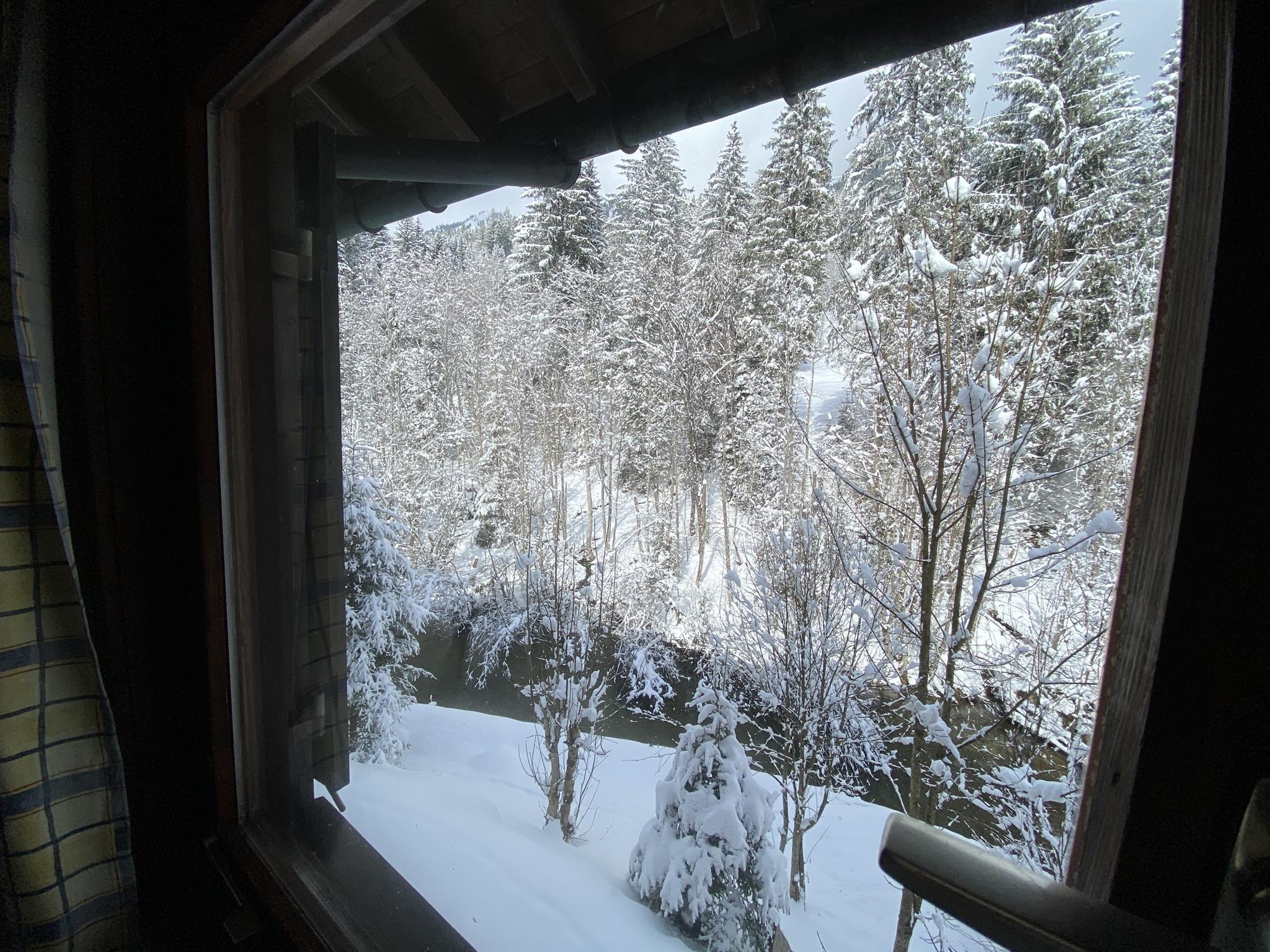 Die Fenster auf Süd- und Ostseite geben einen schönen Blick auf die Berge des Tals und ein Stück Ofterschwangerhorn. Früh werden Sie von der Sonne wachgeküsst und nachts schauen die Sterne in Ihr Bett.