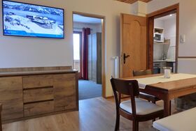 Ausstattung: 2 Doppelzimmer, 1 Dreibettzimmer, 3 x Du/Wc, Smart-TV, WLAN, Safe, Wohnküche mit Essecke, inklusive Erstbezug Bettwäsche und HandtücherKüchenzeile (4 Kochplatten,Backrohr,Kühlschrank mit Gefrierfach, Mikrowelle, Geschirrspüler, Kaffeemaschine, Geschirr).