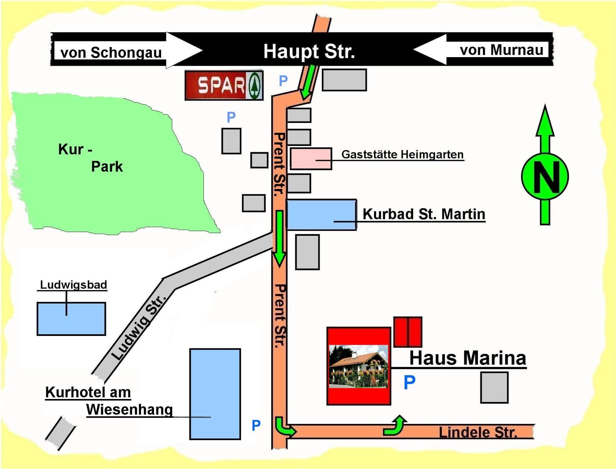 Grüß Gott und herzlich willkommen in unserem Haus Marina. Ankommen und sich wohlfühlen in unseren 3 Ferienwohnungen, 2 davon mit 4 Sternen klassifiziert. Nur für Nichtraucher, rauchen und grillen auf den Balkonen ist nicht erlaubt. Sonnige Balkone rundum begehbar oder Terrasse. Ruhige zentrale Lage. 2 Minuten zum Kurpark. Kuranwendungen sind im Kurbad St. Martin möglich. W-Lan ist kostenlos. Unsere 3 Ferienwohnungen für 1 -2 Pers. sind hell und geräumig und mit viel Liebe eingerichtet. Sie laden Sie auf einen erholsamen Urlaub bei uns ein. Sie bestehen aus einer Diele,einem Schlafzimmer, bezw. 2 Schlafzimmer, Wohnzimmer, einer Essecke sowie einer Küche und geräumigen DU/WC, mit genügend Ablagemöglichkeiten. Parkplätze am Haus. Wir freuen uns auf Ihren Anruf! 08845/354 oder Handy Nr. 015203031890
