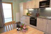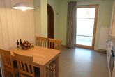 Die neue Küche mit Essecke und Terrassentüre mit Gartenblick ist komplett ausgestattet mit Geschirr, Kochutensilien,Wasserkocher, Kaffeemschine mit Filter, Mikrowelle, Kühlschrank mit Gefrierfach, 4-Zonen Cerankochfeld, Backofen, Spülmaschine, Reinigungsmittel und Staubsauger.
