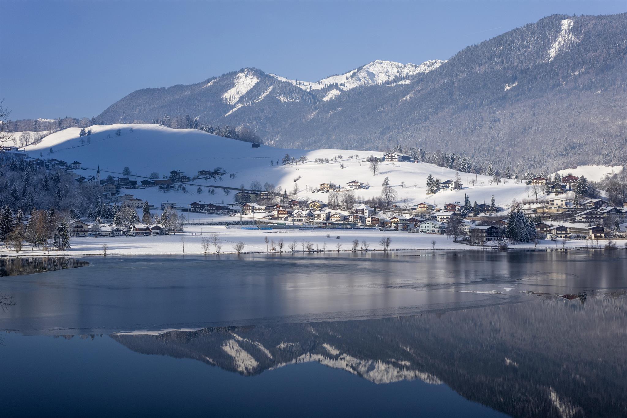 Im Winter zum Eislaufen und Eisstockschießen auf dem See in einer schönen Winterlandschaft, Langlaufen auf der 4 km Loipe um den See, oder Alpin Skilauf auf der Familienpiste, Schneeberg od. der Ski Welt Wilder Kaiser, voller Wintergenuss!