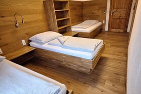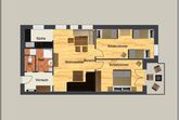 Geräumige Ferienwohnung mit 70m² für 1-7 Personen. Die Wohnung ist ausgestattet mit einem Vorraum, Dusche, WC getrennt, eine Küche mit Geschirrspüler und Mikrowelle, Essecke, ein Wohnraum mit ausziehbarer Couch und TV, ein Doppelbettzimmer mit Balkon und ein Kinderzimmer mit 3 Einzelbetten. Die Wohnung befindet sich im 1. Stock.