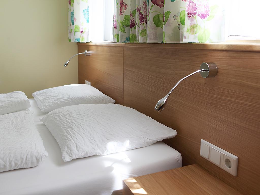 Unser hochwertig ausgestattetes Doppelzimmer besticht durch seine gemütliche Möblierung und sein modernes Ambiente. Das im Erdgeschoss gelegene Gästezimmer wurde im Zuge der Renovierung des beschaulichen Jahrhundertwende-Dorfhauses kürzlich neue geschaffen und ist barrierefrei zu erreichen. Der helle Schlaf/Wohnraum sowie das offene Bad bieten auf insgesamt 16 m2 Platz für Ihren Traumurlaub in den Bergen. Unser Doppelzimmer verfügt über SAT-TV, Safe und WLAN. Gleich nebenan befinden sich die alte Stube des Hauses bzw. eine Küche – beides kann mitbenützt werden. Dieses Zimmer teilt sich mit dem zweiten Erdgeschosszimmer einen gemeinsamen Vorraum bzw. ein WC. Ideal für Familien. Extras: Kuche und alte Stube. Garten & Terrasse. Gratis Leih-Mountainbikes. Sauna, Infrarotsauna, Solarium gleich nebenan im Hotel garni Wallner (8 Euro pro Person).