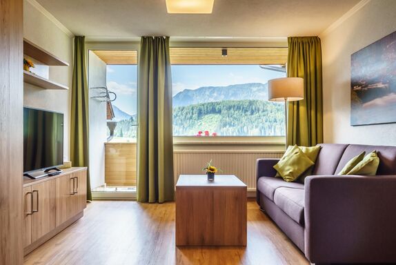 Neues Apartement für bis zu 3 Personen (65 m²), Küche m. Geschirrspüler, Schlafraum, Wohnzimmer mit Eßecke, Sat-TV, Save, 1 Badezimmer mit großer begehbarer Dusche und einem seperaten WC, Süd-Balkon; 1. Stock mit toller Aussicht auf die Pyhrn-Priel Region;