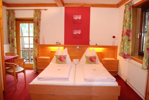 Helles gemütliches Themenzimmer für 2 Personen im 1. Stück - südseitig. Dieses Zimmer ist mit einem Doppelbett (180 x 200 m) ausgestattet und die Einrichtung aus hellem Vollholz. Badezimmer mit Du/WC. Radio und Balkon mit Blick in den Garten und auf den Gr. Pyhrgas und Bosruck.
