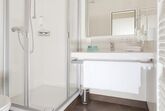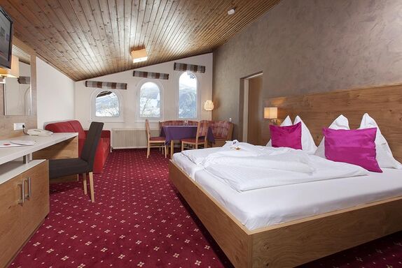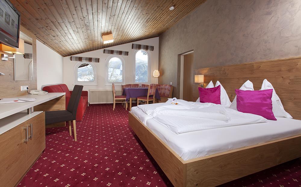 Großzügige Zimmer und Appartements: mit Dusche/WC, Telefon, Flat-TV, Safe, Balkon.