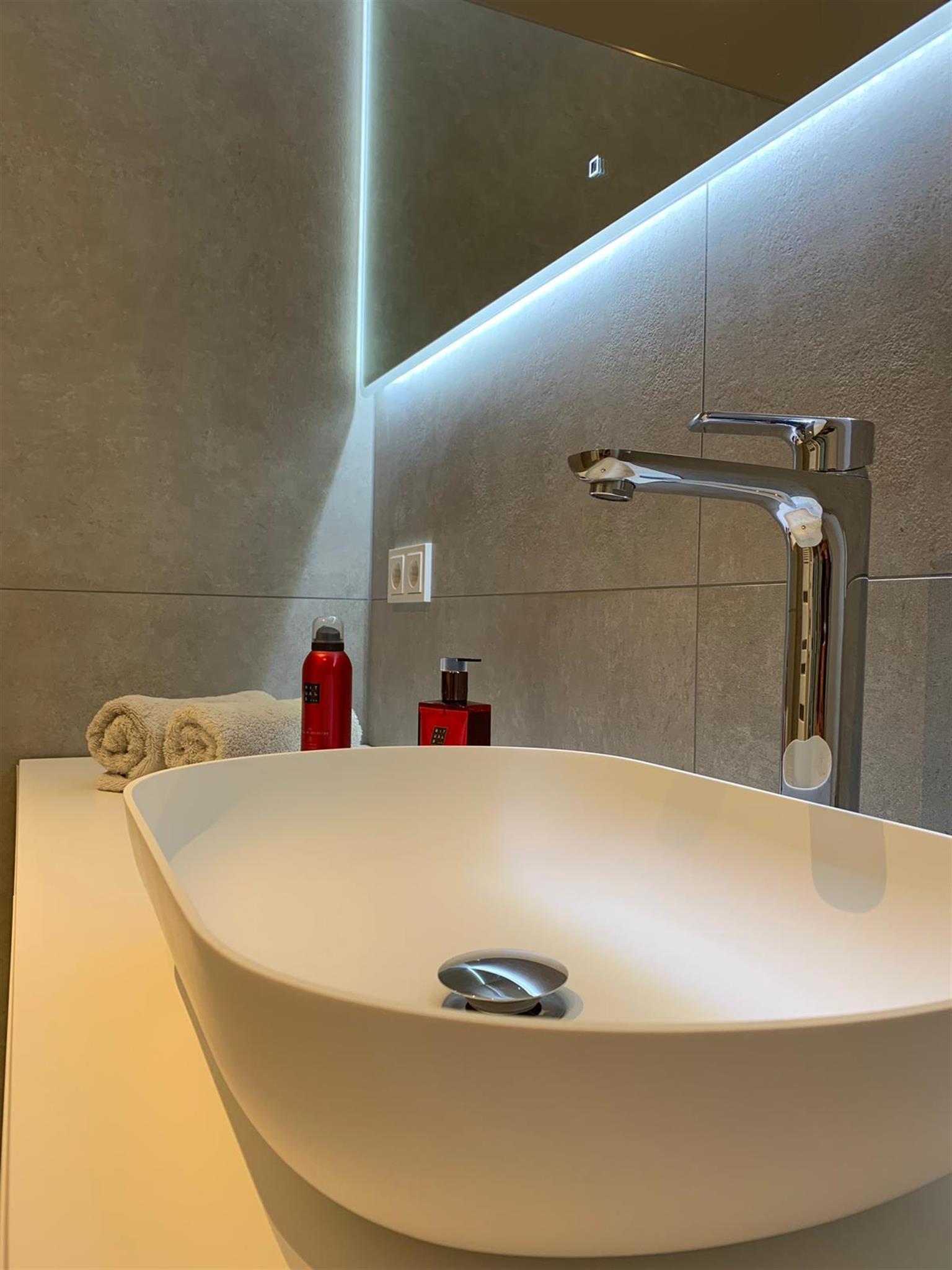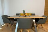 Die Ausstattung ist luxuriös und hochwertig: Holzboden aus Eiche natur, großzügige Holz Alu Panorama Fenster, Duravit, Hans Grohe Badausstattung, Villeroy und Boch Toilette, komplett eingerichtete DAN Küche mit neuen Siemens Geräten inklusive Geschirrspüler und Segafredo Espresso Maschine, Flat Screen, Free W-Lan, Smart TV,...