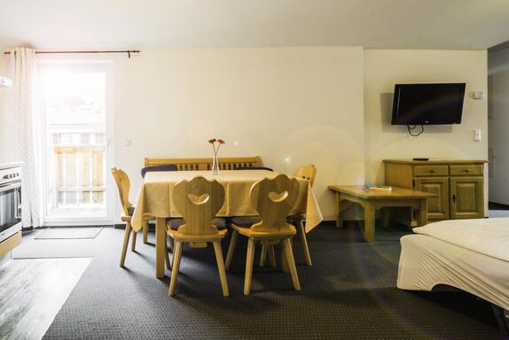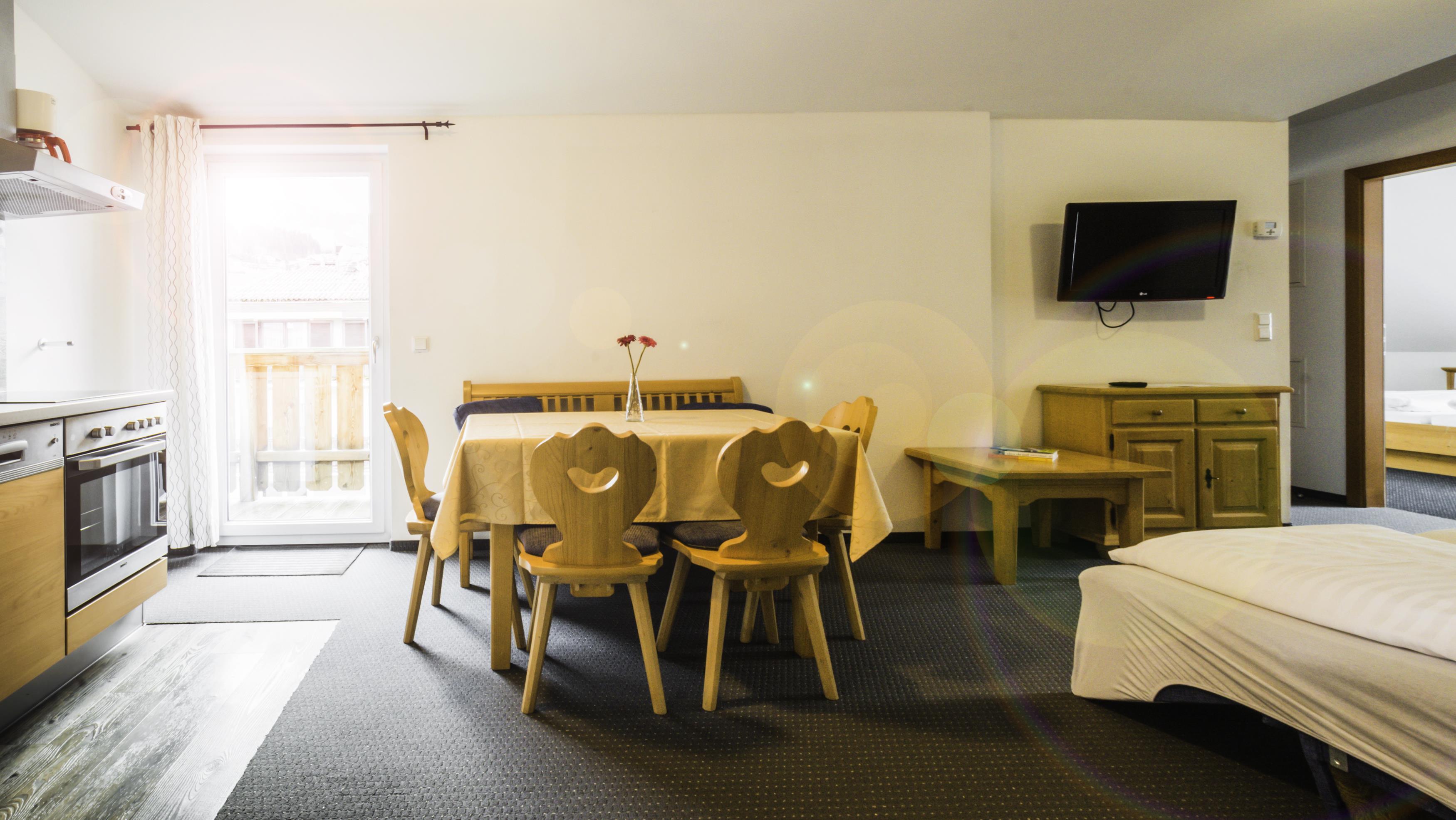 70 m2, 2 Schlafräume für 4-6 Personen. Wohnküche: Geschirrspüler, Mikrowelle, Kühlschrank, Backofen, Kaffeemaschine, Elektroherd, Dunstabzug, Wasserkocher - Geschirrtücher, Spülmittel, Lappen, Geschirrspültabs vorhanden Essbereich: Flachbildschirm, Schlafsofa für 2 Personen Schlafzimmer: Doppelbett, Schrank Badezimmer mit Dusche, getrenntes WC, Haartrockner teilweise mit Balkon oder Terrasse Ski- und Trockenraum