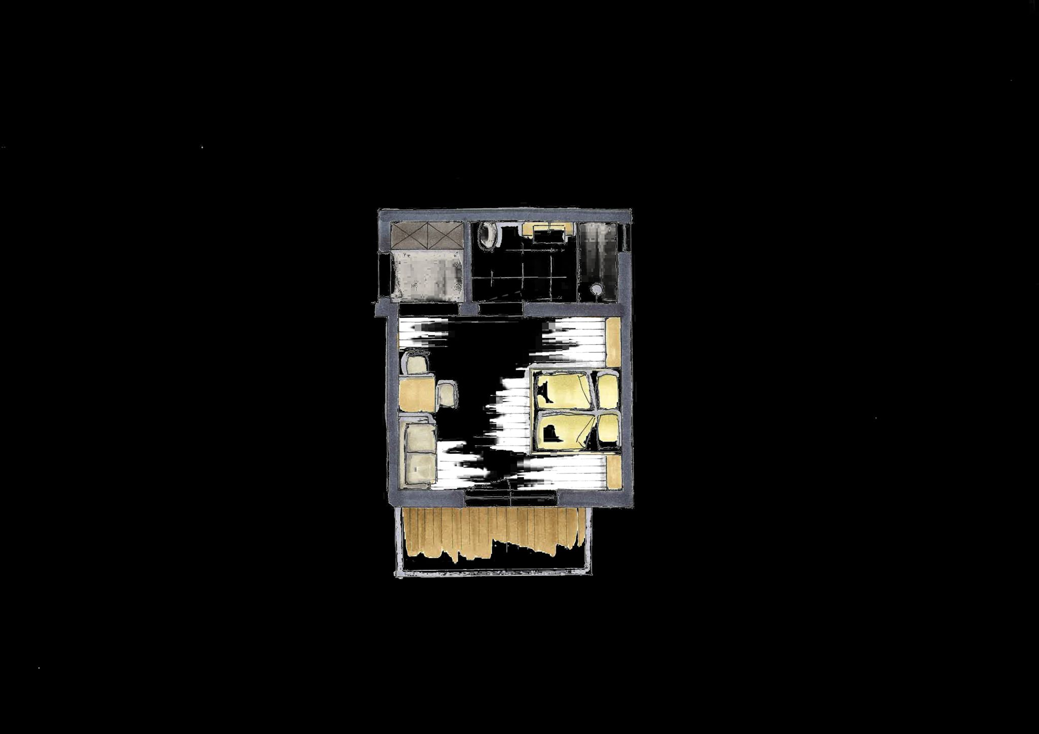 Zimmer mit DU/WC, TV und Balkon. Jedes Zimmer ist mit einem Safe ausgestattet. Das 3. Bett ist eine Couch.