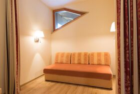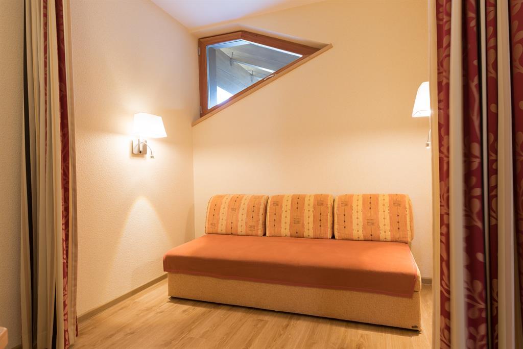 Der Wohnraum ist ausgestattet mit einer großzügigen Sitzecke mit Tisch, gratis WiFi und Kabel-TV. Die zusätzliche Couch im Wohnraum kann bei Bedarf als weiteres Zusatzbett genutzt werden.