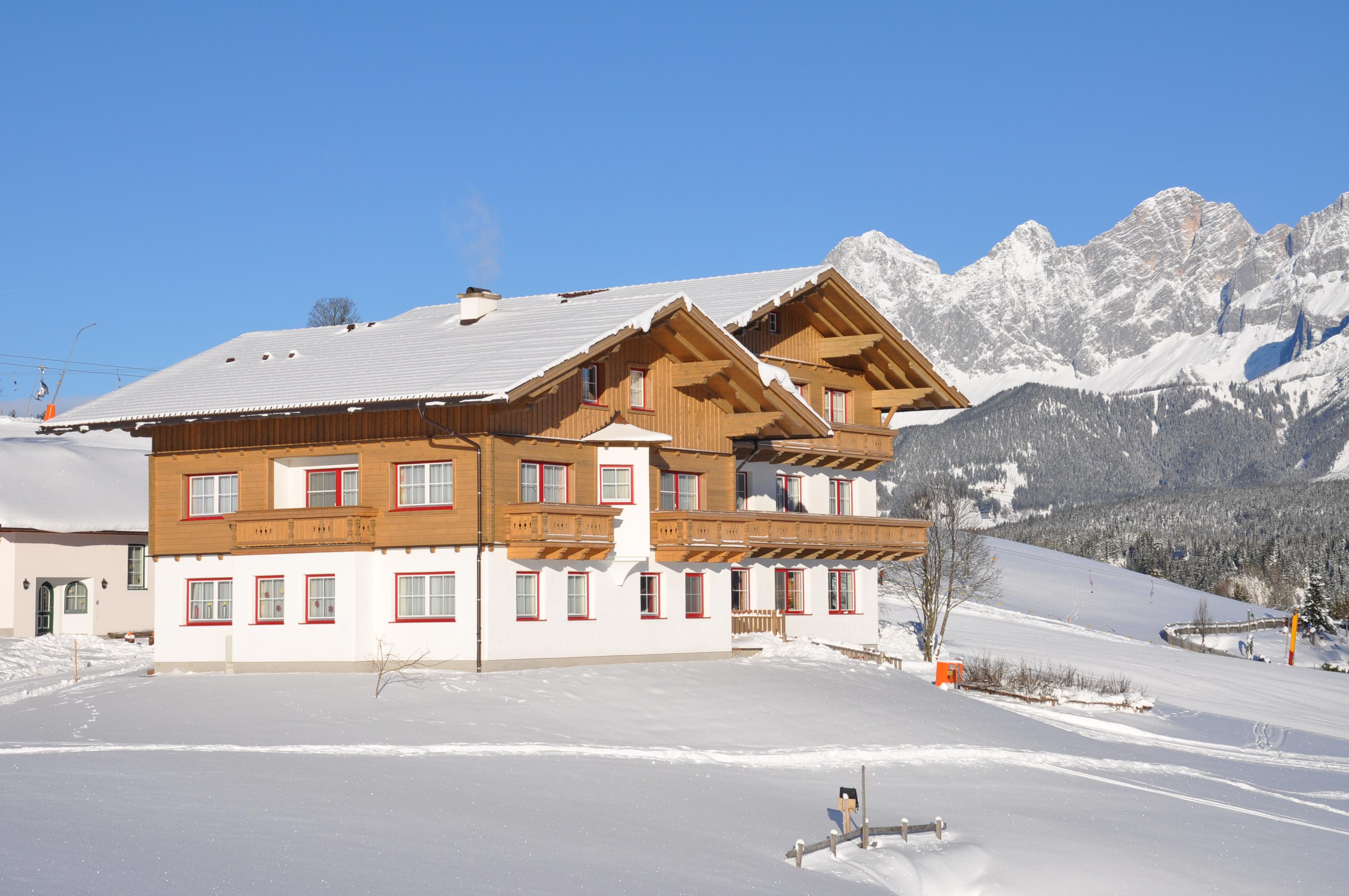 Unsere familiär geführte Bio-Pension befindet sich auf 1.100 m Seehöhe in sonniger Lage in Schladming (Ortsteil Rohrmoos) inmitten eines beeindruckenden Bergpanoramas!