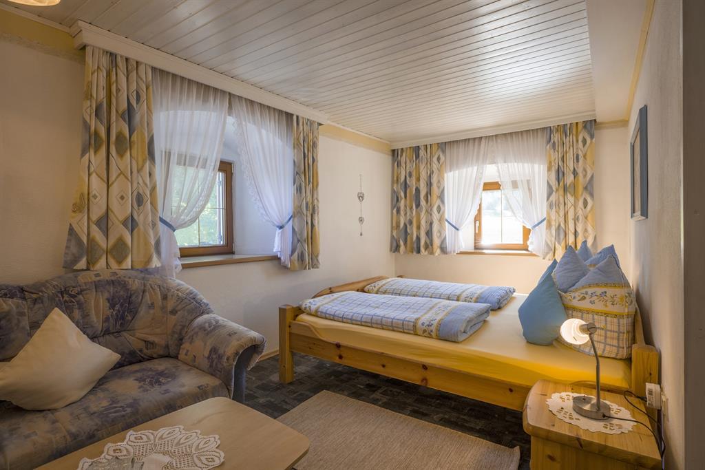 Großes Familienzimmer mit Dusche. 2 Zimmer mit Dusche. Kinderermässigung, gemütlicher Frühstücks- und Aufenthaltsraum mit SAT-TV, Kachelofen, Gästekühlschrank. Hunde auf Anfrage.