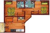 70m² 2 Schlafräume 1x mit Doppelbett und einem Zustellbett 1x mit Doppelbett und 2 Zustellbetten. 2 Bäder mit DU/WC