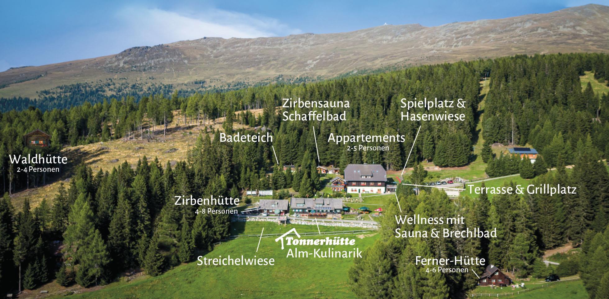 AlmDorf Tonnerhütte – Natur. Ruhe. Heimatgefühl. 1600 Meter über dem Alltag – im Herzen des Naturparks Zirbitzkogel-Grebenzen liegt das AlmDorf Tonnerhütte, wo sich Ursprünglichkeit, gelebte Gastfreundschaft und echte Erholung zu einem besonderen Urlaub verweben.