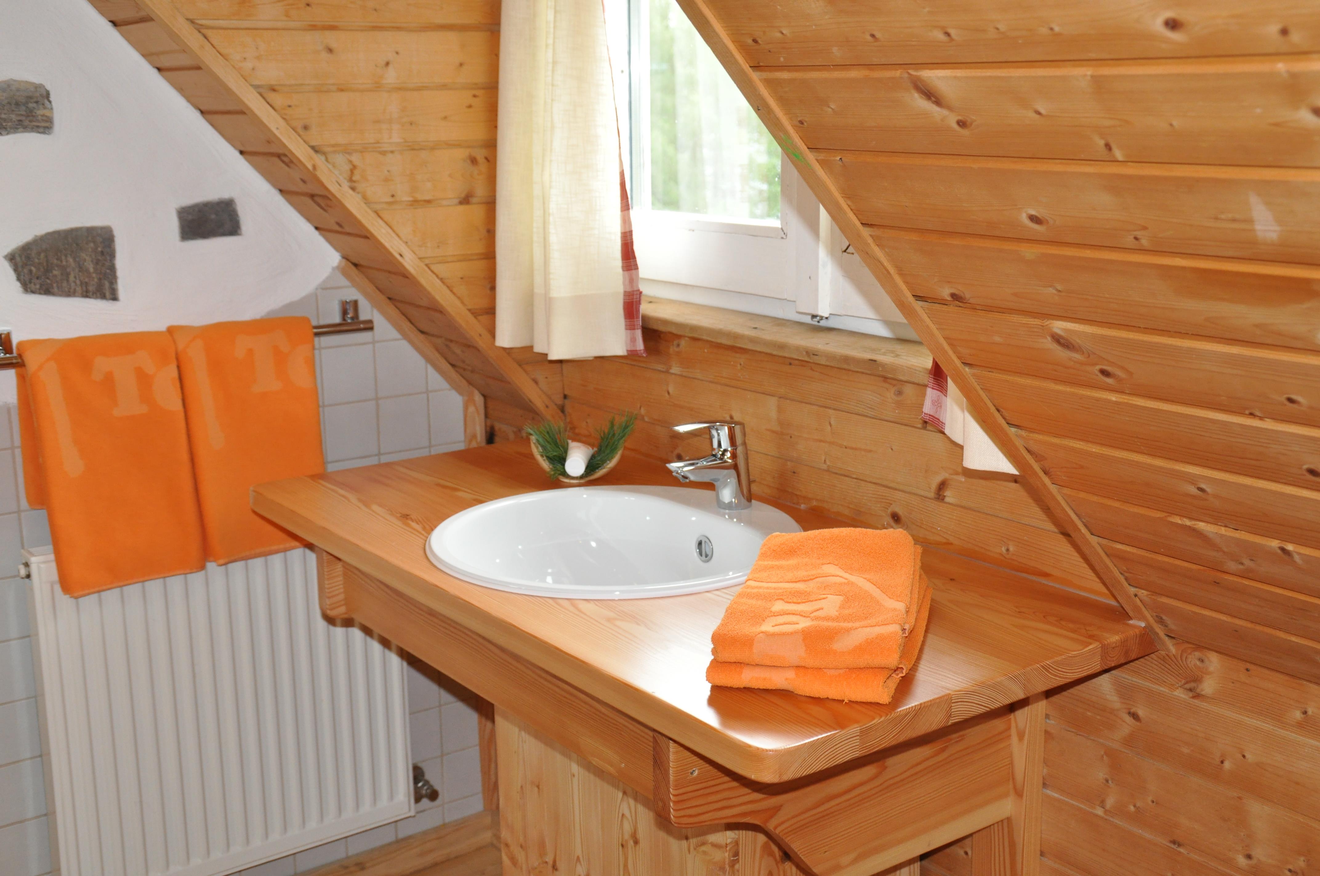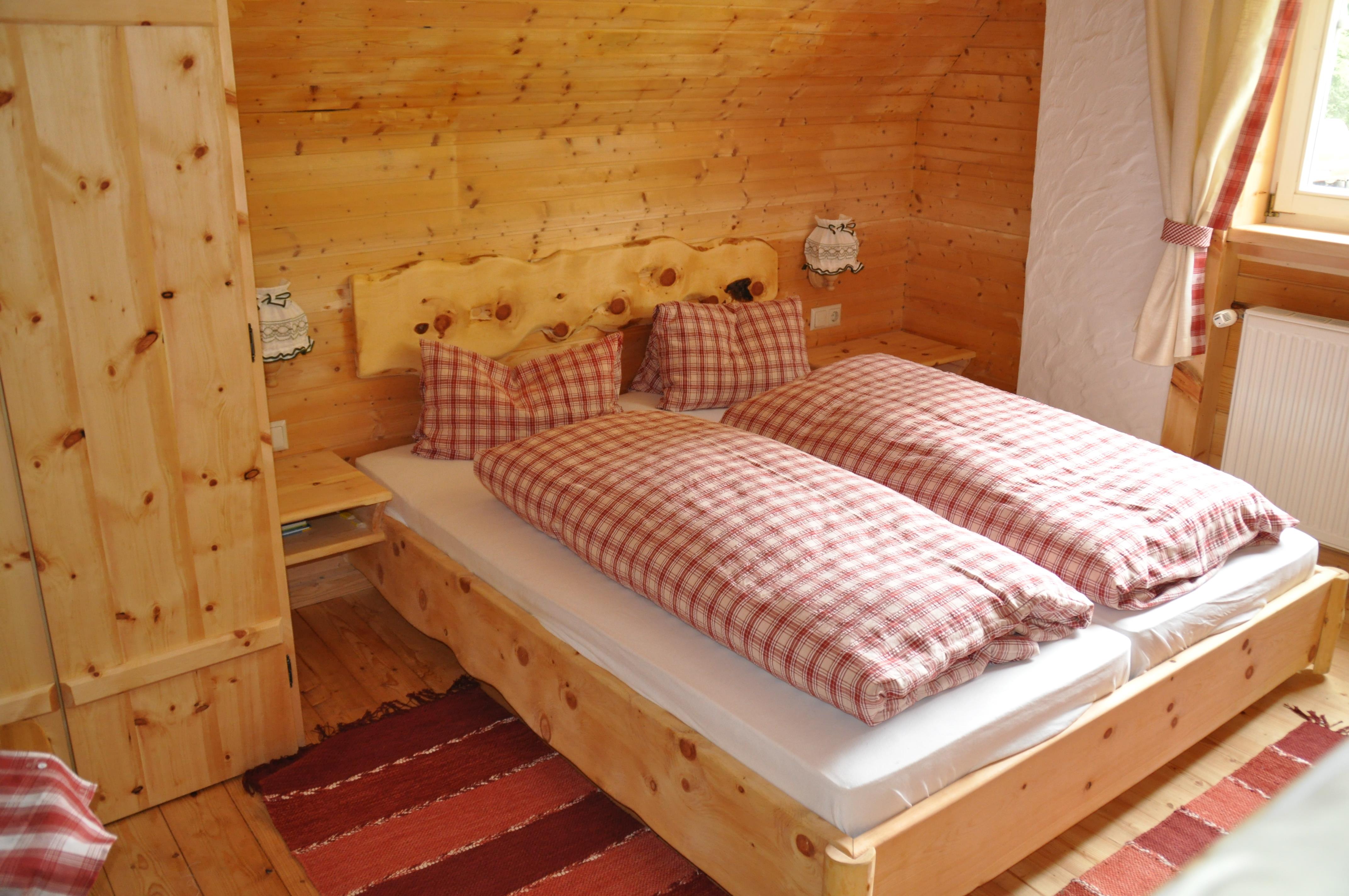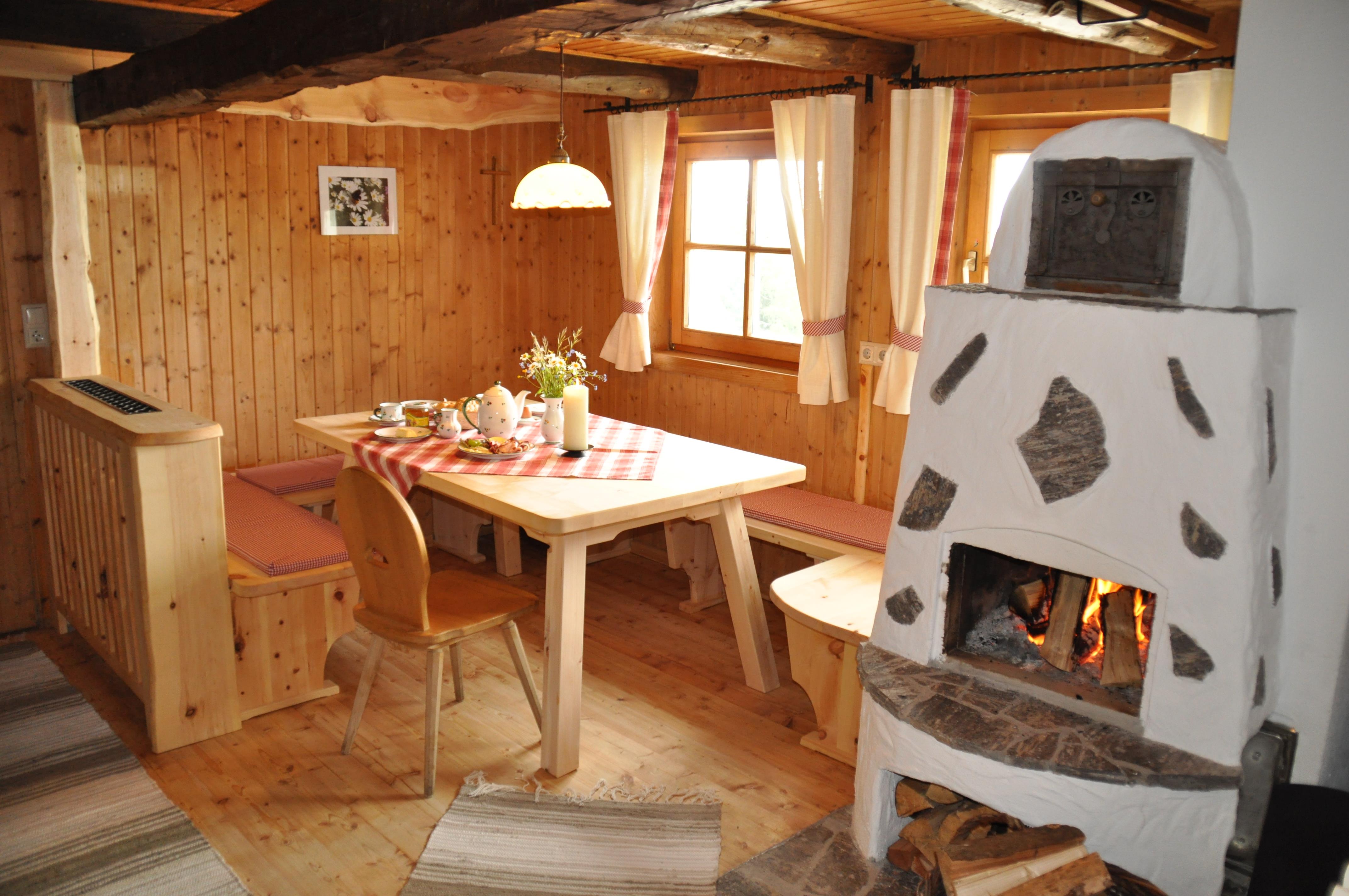 Ein Urlaub in der Zirbenhütte ist ein bisschen wie aussteigen auf Zeit und irgendwie hat man das Gefühl als sei hier die Zeit stehen geblieben. Im Erdgeschoss gibt es eine Wohnstube, eine Küchenzeile mit Kühlschrank und eine gemütliche Sitzecke. Das Feuer knistert im Kachelofen und offenem Kamin und das Kuschelbett in der Stube ist der Lieblingsplatz der ganzen Familie. Der Fernseher bekommt wenig Beachtung, stattdessen gibt es Spiele wie „Mensch ärgere Dich nicht, Monopoly, Schnapsen (steirisches Kartenspiel) usw. Im oberen Geschoss gibt es 2 Schlafzimmer mit je einem Doppelbett und einem Stockbett. Die Holzfußböden strahlen Gemütlichkeit und Wärme aus und der Duft der Zirbenmöbel wird sie verzaubern. Dazu gibt es zwei Badezimmer, eines mit Holzbadewanne, WC und Waschbecken und eines mit Dusche, WC und Waschbecken. Knapp 70 m² Hüttenatmosphäre für Ihre Familie oder gemeinsam mit Freunden. Vor der Hütte genießt man in der Nachmittagssonne ein Häferl Punsch oder Glühwein und den grandiosen Ausblick ins Tal.