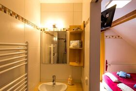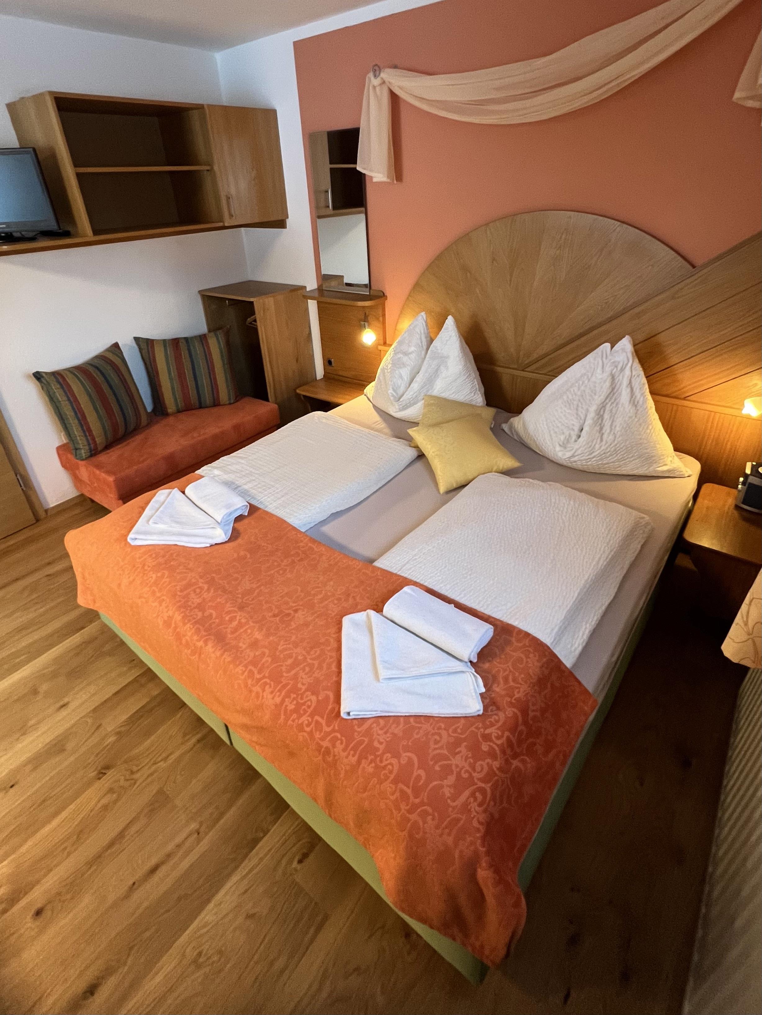 Ein gemütl.Komfort-Zimmer mit Doppelbett und Doppelcouch, Du, WC, Radio, TV und gratis W-LAN.