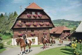 Unser hist. Bio-Berg-Bauernhof mit Reitstall liegt mitten im Naturpark Zirbitzkogel- Grebenzen auf einem Sonnigen Hochplateau auf 1000m Seehöhe. Jede Menge Spielsachen, Erlebnisspielplätze, Pferde und Tiere machen unseren Hof ein Paradies für Familien mit Kindern. Im Sommer bieten wir auf 15 Pferden aller Rassen qual. Unterricht für Jung und Alt an der Longe, im Spring und Reitplatz bis Kl. L/LM und geführte Ritte im Gelände. Im Winter haben wir einen gratis Kinderlift hinterm Bauernhaus. Schlitten und Bobs werden schnell zum Hauptfortbewegungsmittel. Unser Familienschigebiet St. Lambrecht Grebenzenalm können Sie in 5 Autominuten erreichen. Schischule, Sportgeschäft und urige Almhütten mit perfekt preparierten Pisten bieten alles für den Wintersportler.