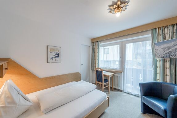 Unsere Einzelzimmer sind im Tiroler Stil möbliert und mit Grand Lit Betten (1,40 m breites Bett), Balkon, Zimmersafe, Kabel-TV, W-LAN, Telefon und Radio ausgestattet. Alle Badezimmer sind renoviert mit Badewanne und kombinierter Dusche, großes Waschbecken und WC, hell und modern!