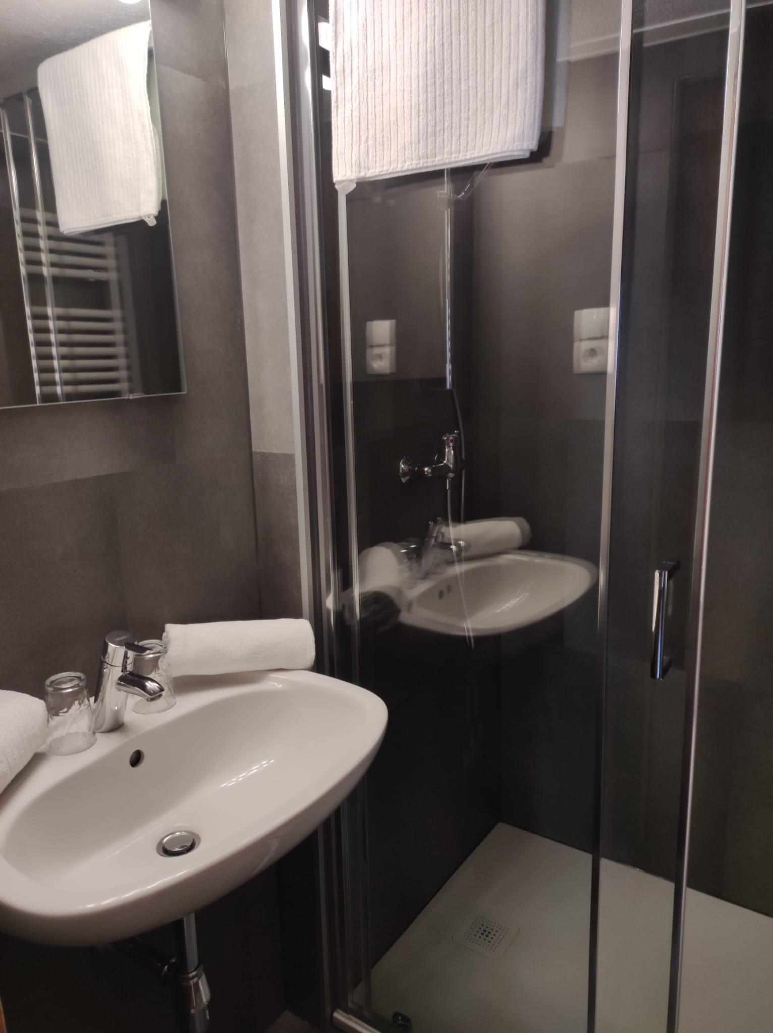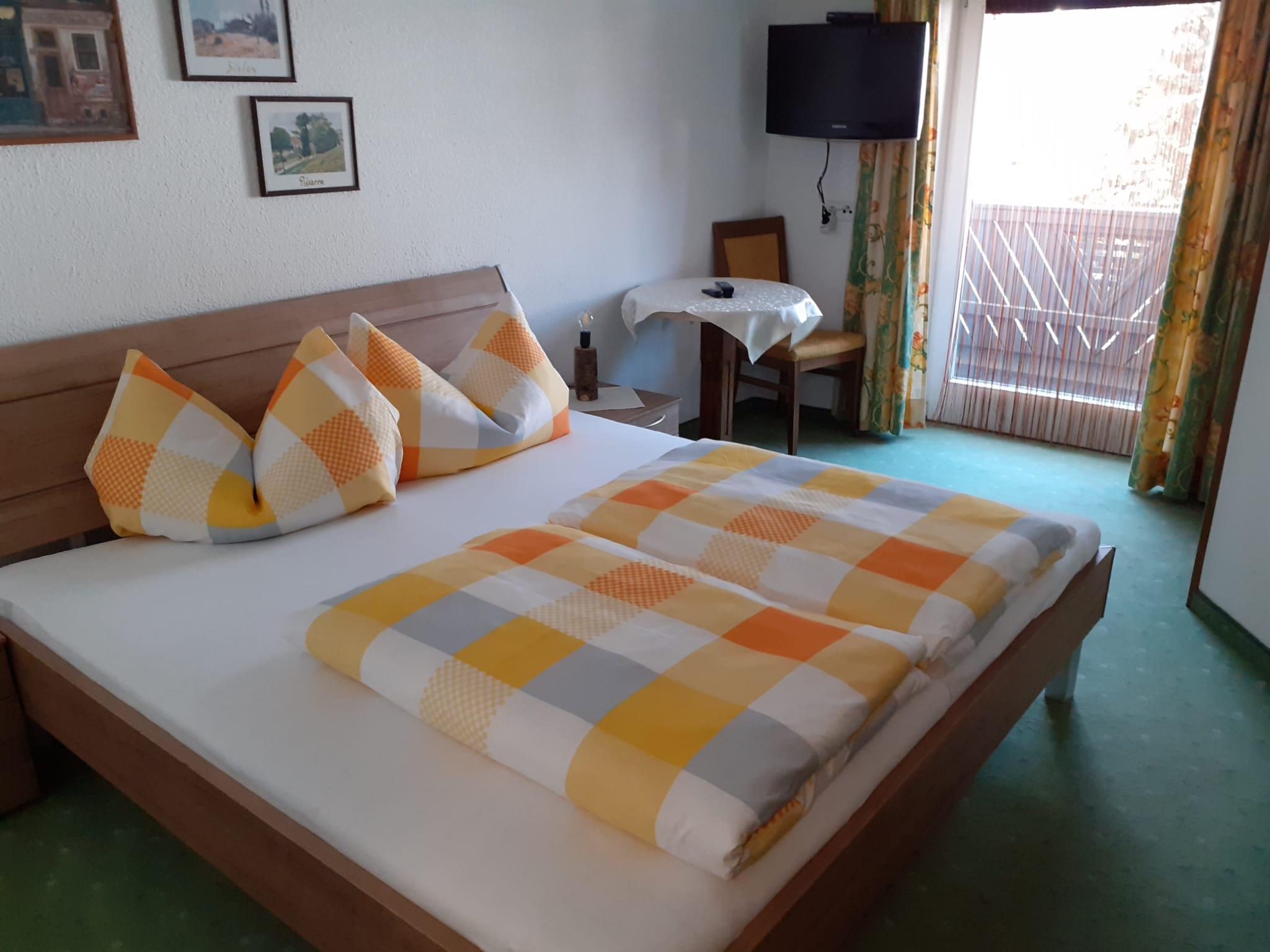 Doppelzimmer mit Dusche/WC, Sat-TV und Balkon mit Sitzmöglichkeit.