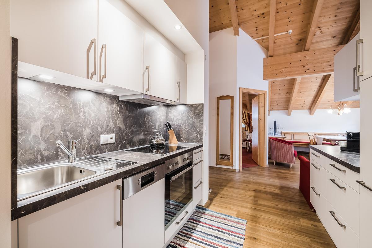 Gemütliches Appartment mit 2 Schlafzimmer für 4-5 Personen (ca. 74 m²): 1 Doppelzimmer, 1 Doppelzimmer/Dreibettzimmer, Wohnzimmer mit Sitzbereich, TV, Radio; 2 Badezimmer mit Badewanne/Dusche, WC und Haarfön; 1 grundausgestatte Küche (Geschirrspüler, 4-Platten-Herd, Kaffeemaschine, uvm.) Balkon oder Terrasse.