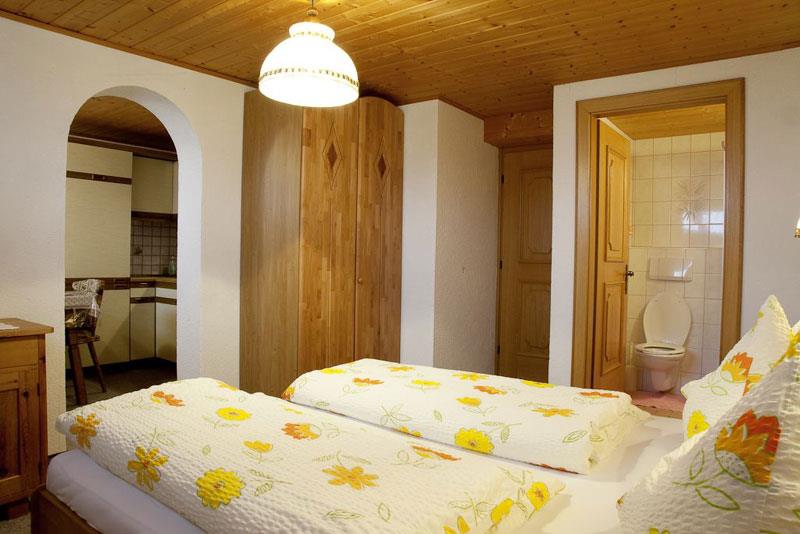 Komfortable Ferienwohnung mit 1 Doppelzimmer, Dusche und WC, Küche, TV, Brötchenservice, ca. 50 m². 1 weiteres Doppelzimmer mit Balkon und Dusche/WC befindet sich ausserhalb der Einheit im 1. Stock.