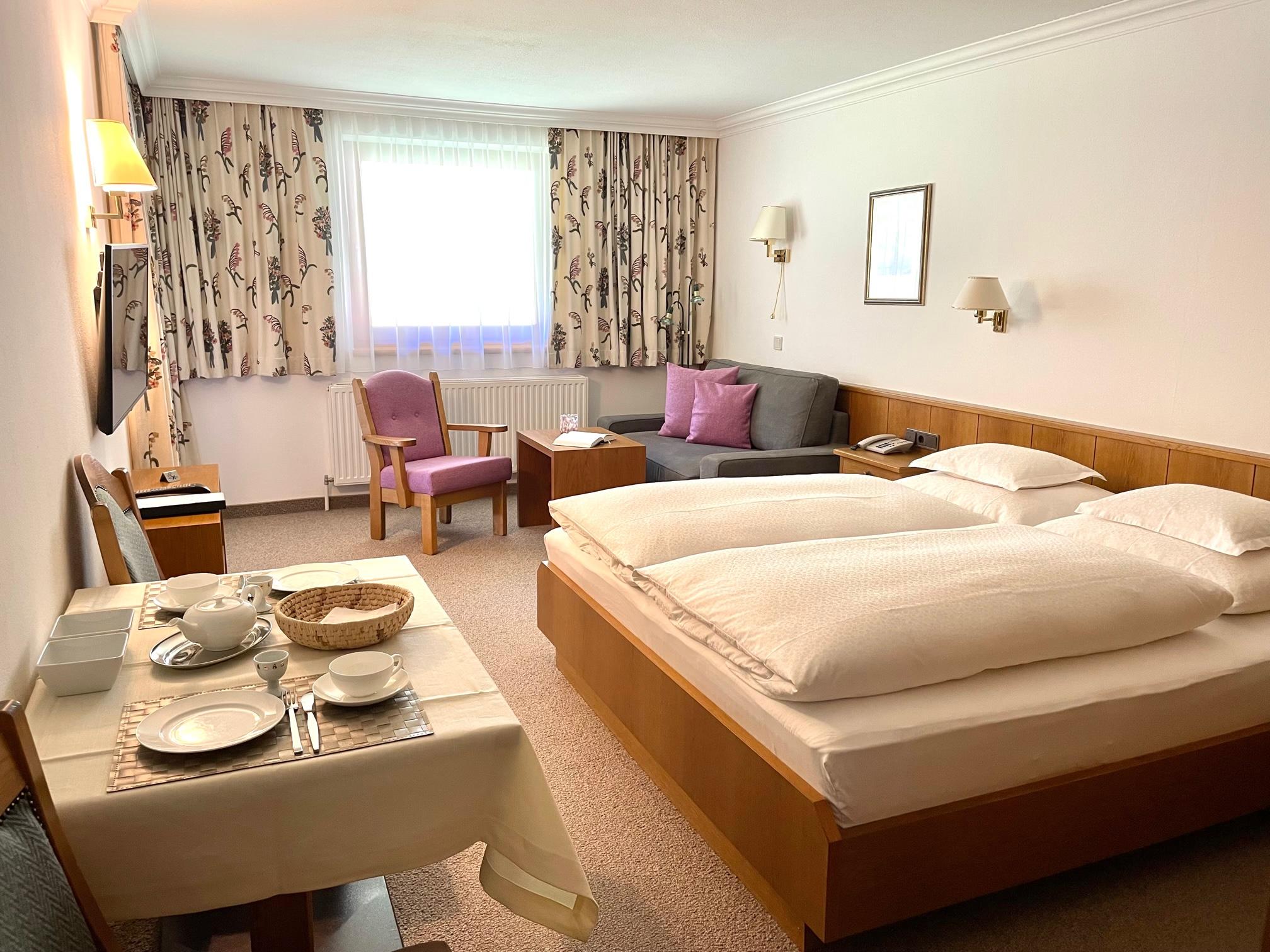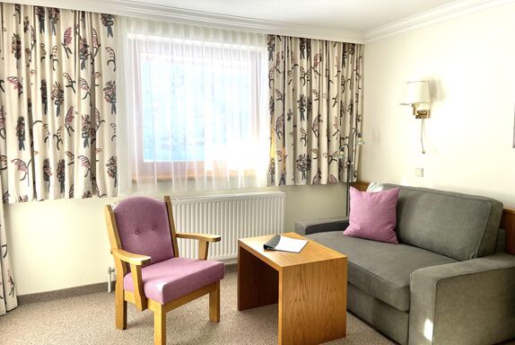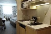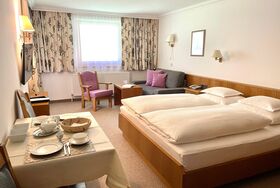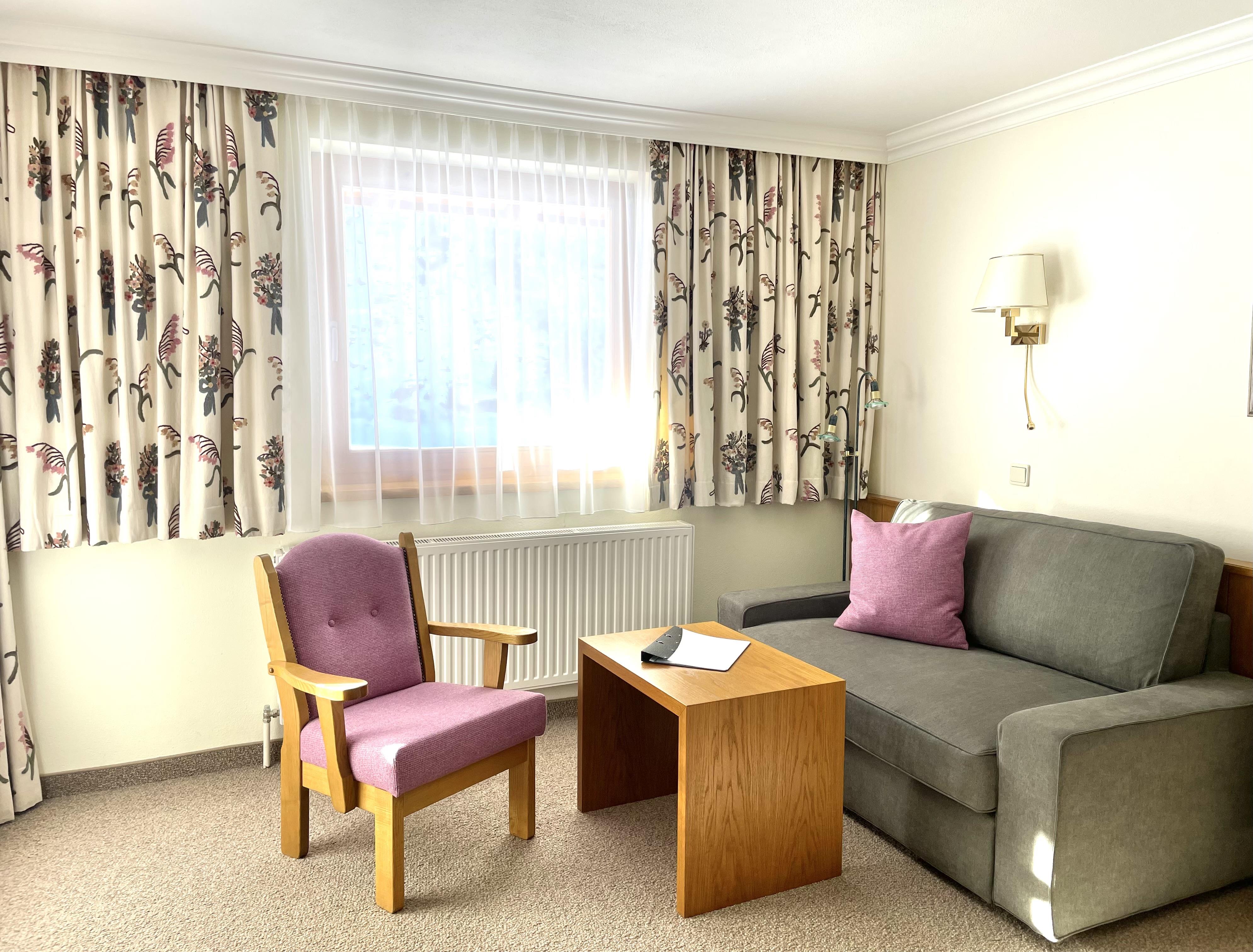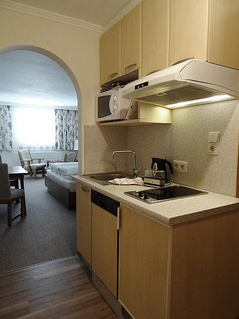 Gemütliches Studio für 2-3 Pers., ca. 32 m², mit Balkon und Blick zur Loipe. Wohnschlafraum mit 1 Doppelbett, Wohnecke mit Schlafcouch für 1 Person, Kochnische (Elektroherd, Geschirrspülmaschine, Kühlschrank, Mikrowelle, Kaffeemaschine uvm.), Kabel-TV und Safe. Badezimmer mit Badewanne und 1 separates WC.