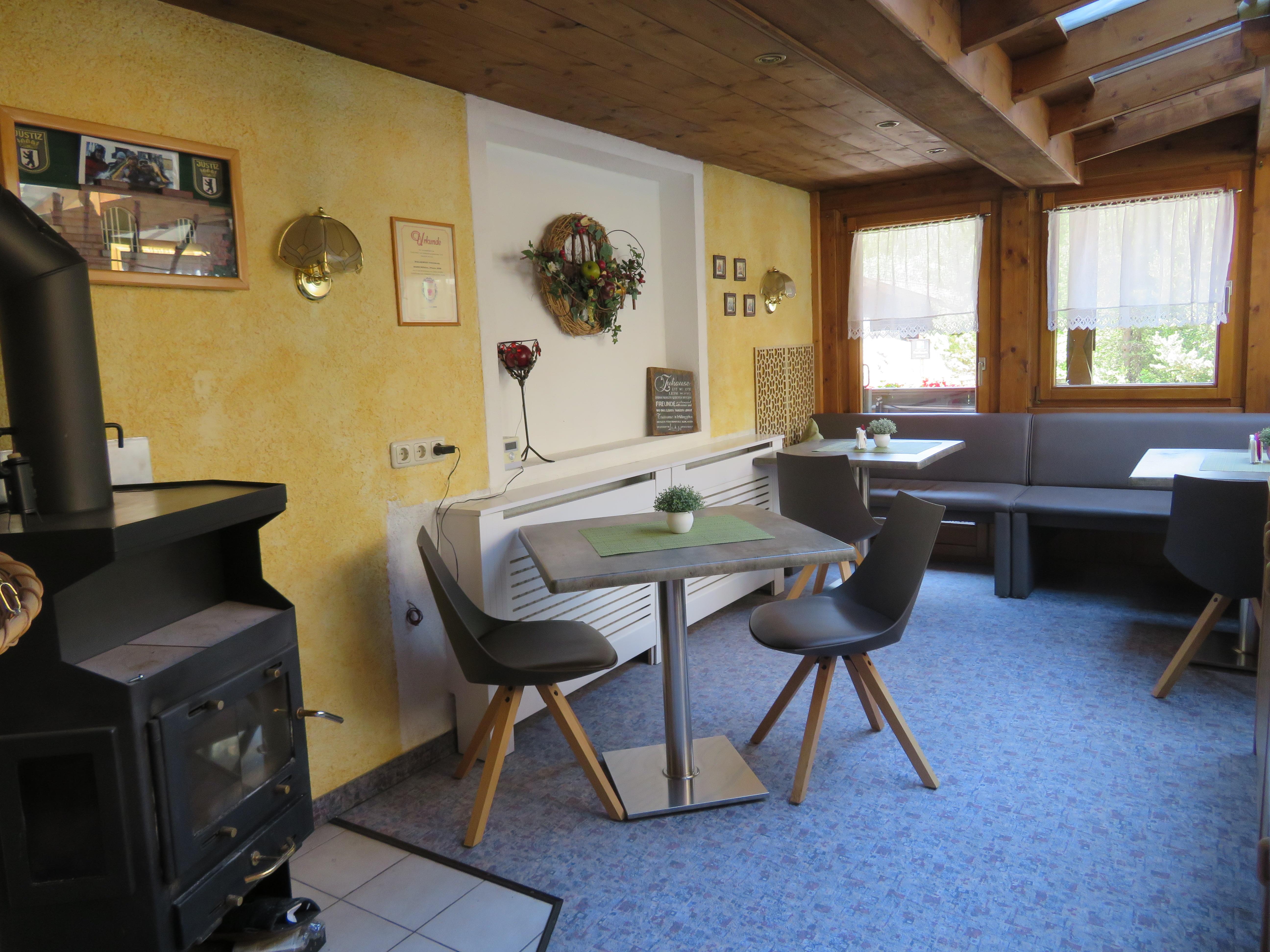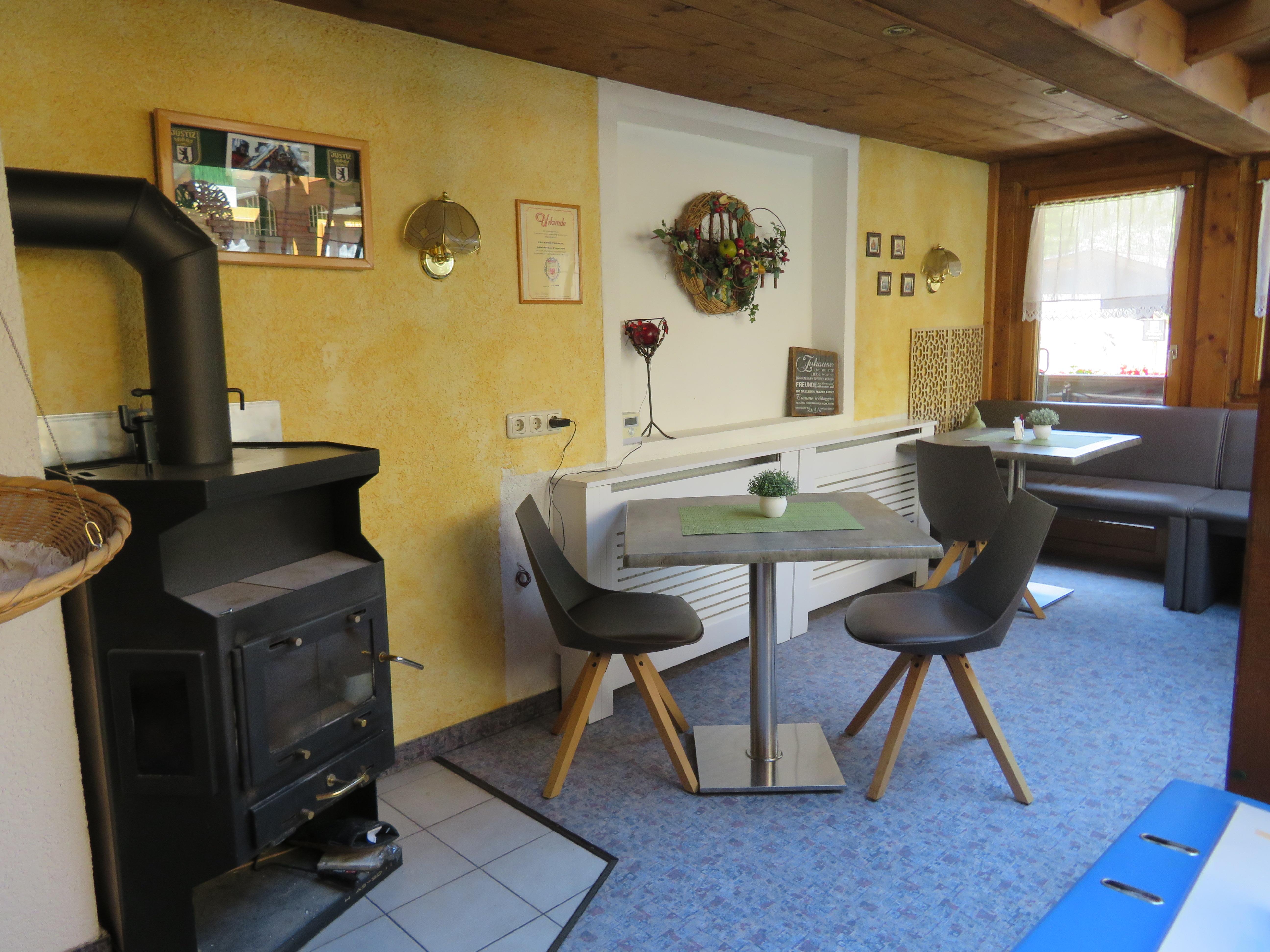 Das Frühstücksbuffet servieren wir ihnen in unserem gemütlichen Wintergarten am Kaminfeuer.