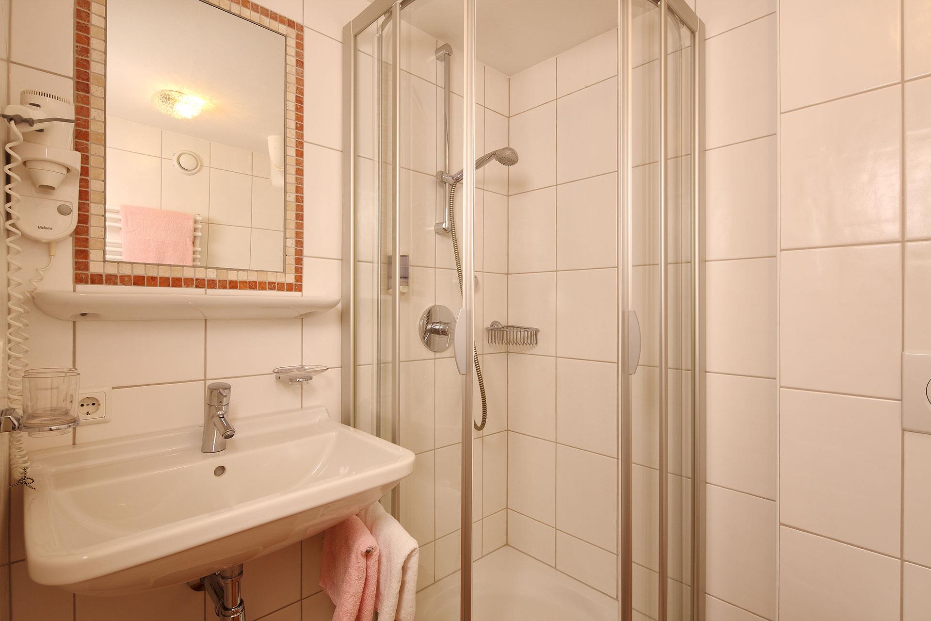 Gemütliches Doppelzimmer mit Zustellbetten für 2 Personen, Dusche/WC und Sat-TV, Safe, Haarföhn. Teilweise verfügen unsere Zimmer über einen Balkon. Besonders ruhig gelegen. Größe ca. 18 m²